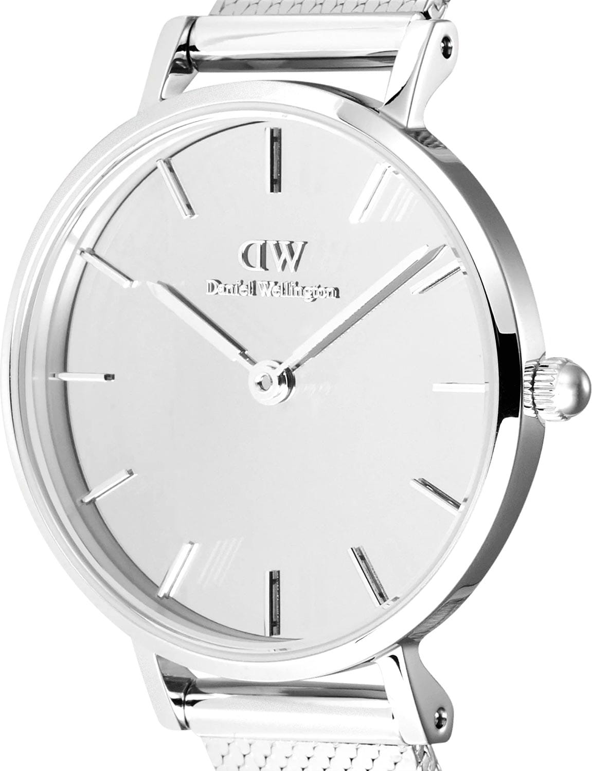 Женские наручные часы с минеральным стекломМинеральное стеклоМинеральное стекло представляет собой искусственно выращенный минерал кварца. Такое стекло отличается особой устойчивостью к повреждениям и царапинам. Уступает по некоторым качествам сапфировому стеклу. Daniel Wellington Petite Reflection Silver DW00100796, кварцевый механизм с высокой точностью. Корпус часов изготовлен из нержавеющей стали. Накладные метки в виде штрихов. Японский кварцевый механизм. Рифленая заводная головка. Класс водозащиты: 30 метров, позволит защитить корпус от случайных брызг или капель дождя. Стальной браслет миланского плетения на раскладном замкеРаскладной замокДанный вариант застежки используется только на часах с металлическим браслетом. Отличительная особенность такого крепления в том, что длина браслета становится универсальной и вы можете самостоятельно отрегулировать нужный вам размер – застежка просто двигается по браслету часов..