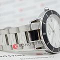 Стальной браслет с чередованием сатинированных и полированных звеньев фиксируется на запястье при помощи удобной застёжке-бабочке с кнопкамиЗастёжка "бабочка"Такой вид застёжки дополняется предохранителями, помогающими избежать случайного раскрытия браслета. Обладают изящным исполнением. , обеспечивающей комфорт и надёжность при носке.