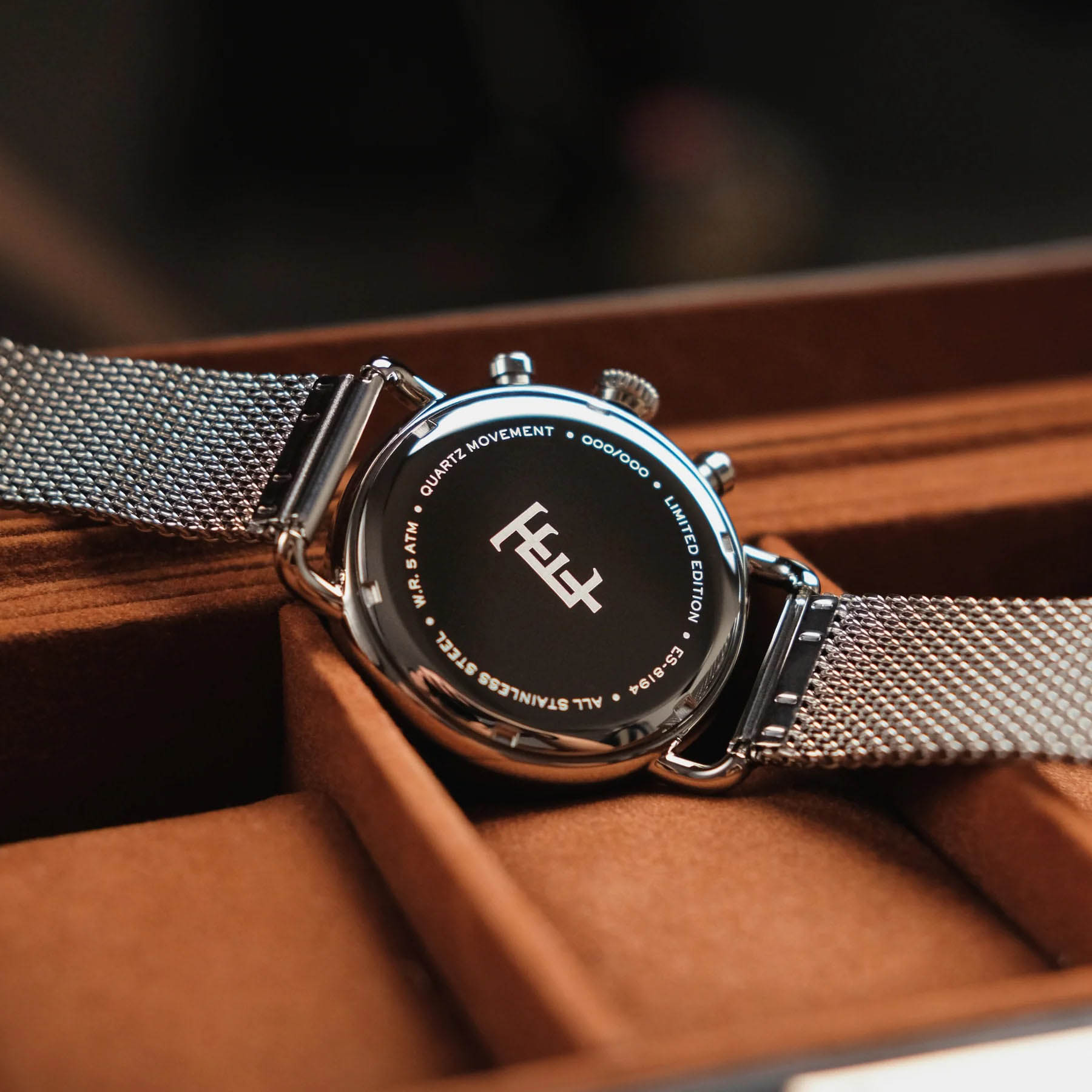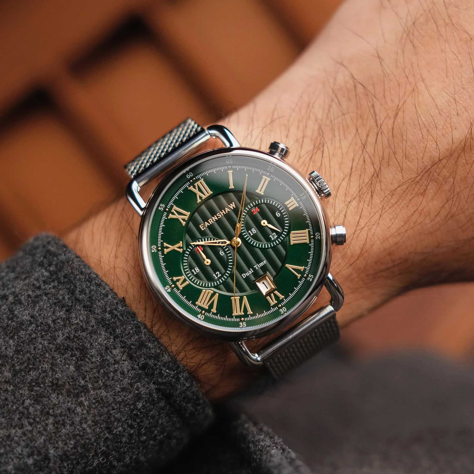 Мужские наручные часы с минеральным стекломМинеральное стеклоМинеральное стекло представляет собой искусственно выращенный минерал кварца. Такое стекло отличается особой устойчивостью к повреждениям и царапинам. Уступает по некоторым качествам сапфировому стеклу. Earnshaw Investigator ES-8194-33, кварцевый механизм с высокой точностью. Класс водозащиты: 50 метров, позволит защитить корпус от случайных брызг или капель дождя. Корпус часов изготовлен из стали. Центральные часовая, минутная и секундная стрелки. Апертура даты в позиции 6 часов. 12/24х часовой формат времени. Второй часовой пояс. Коричневый циферблат. Римская индикация времени. Круглый корпус выполнен из нержавеющей стали.