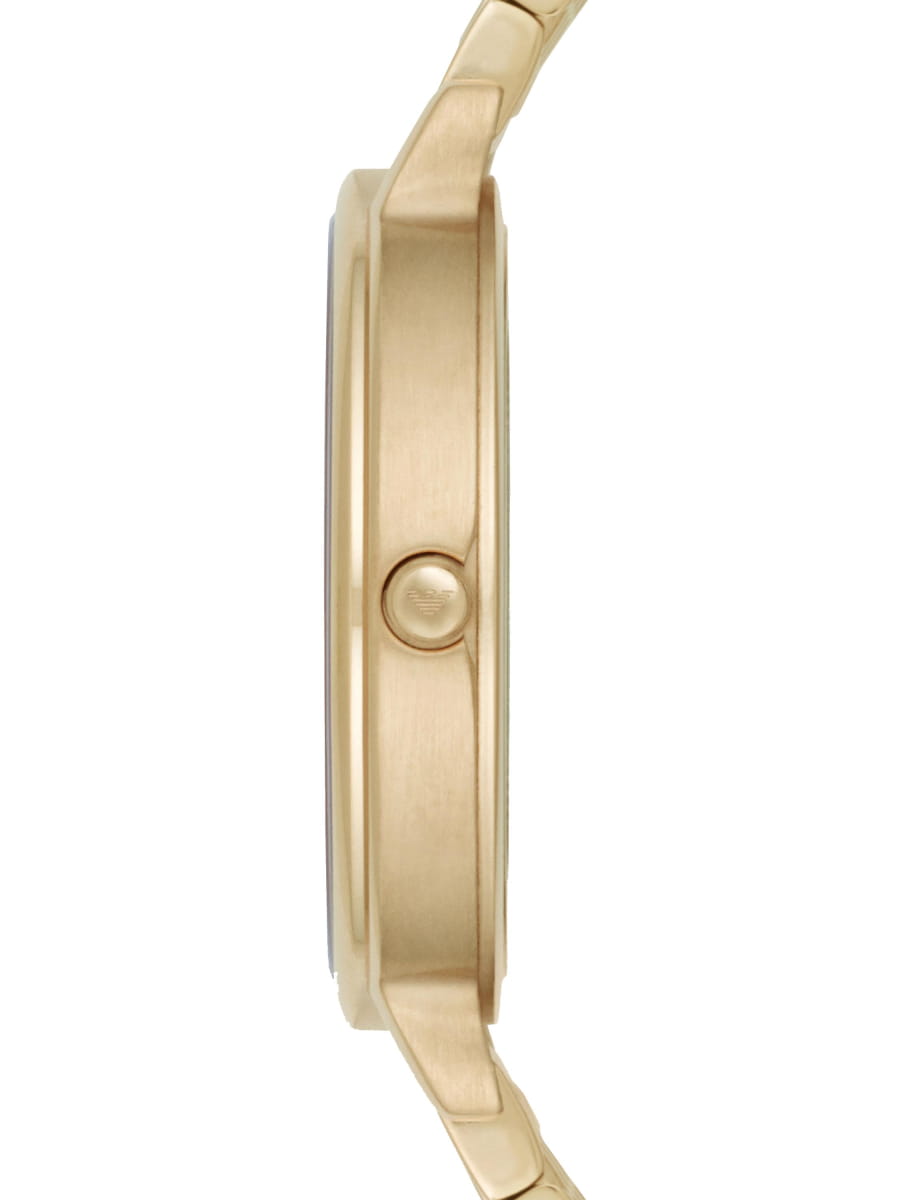 Женские кварцевые часы Emporio Armani из серии Kappa — это стильная новинка, сочетающая элегантность итальянского дизайна с надёжностью японского механизма. Корпус выполнен из нержавеющей стали с золотистым покрытием, которое реализовано по технологии PVD-покрытиеPVDУльтратонкое покрытие наносится в технике вакуумного напыления, сочетает в себе нитрид титана особой прочности со слоем золота или оксида хрома. Несёт в себе декоративную или защитную функцию.. Часы защищены минеральным стекломМинеральное стеклоМинеральное стекло представляет собой искусственно выращенный минерал кварца. Такое стекло отличается особой устойчивостью к повреждениям и царапинам. Уступает по некоторым качествам сапфировому стеклу.. Циферблат круглой формы выполнен в перламутровом цвете, придающем модели изысканный блеск, а индикация представлена золотистыми точками. Браслет из нержавеющей стали с золотистым покрытием фиксируется на застёжке «бабочка» с кнопкамиЗастёжка "бабочка"Такой вид застёжки дополняется предохранителями, помогающими избежать случайного раскрытия браслета. Обладают изящным исполнением. , обеспечивая удобство и надёжность ношения. Водонепроницаемость составляет 30 WR, что позволяет защитить часы от случайных брызг и капель дождя. Модель подчеркивает женственность и утончённый вкус владельца, идеально подходя как для повседневного, так и для вечернего образа.