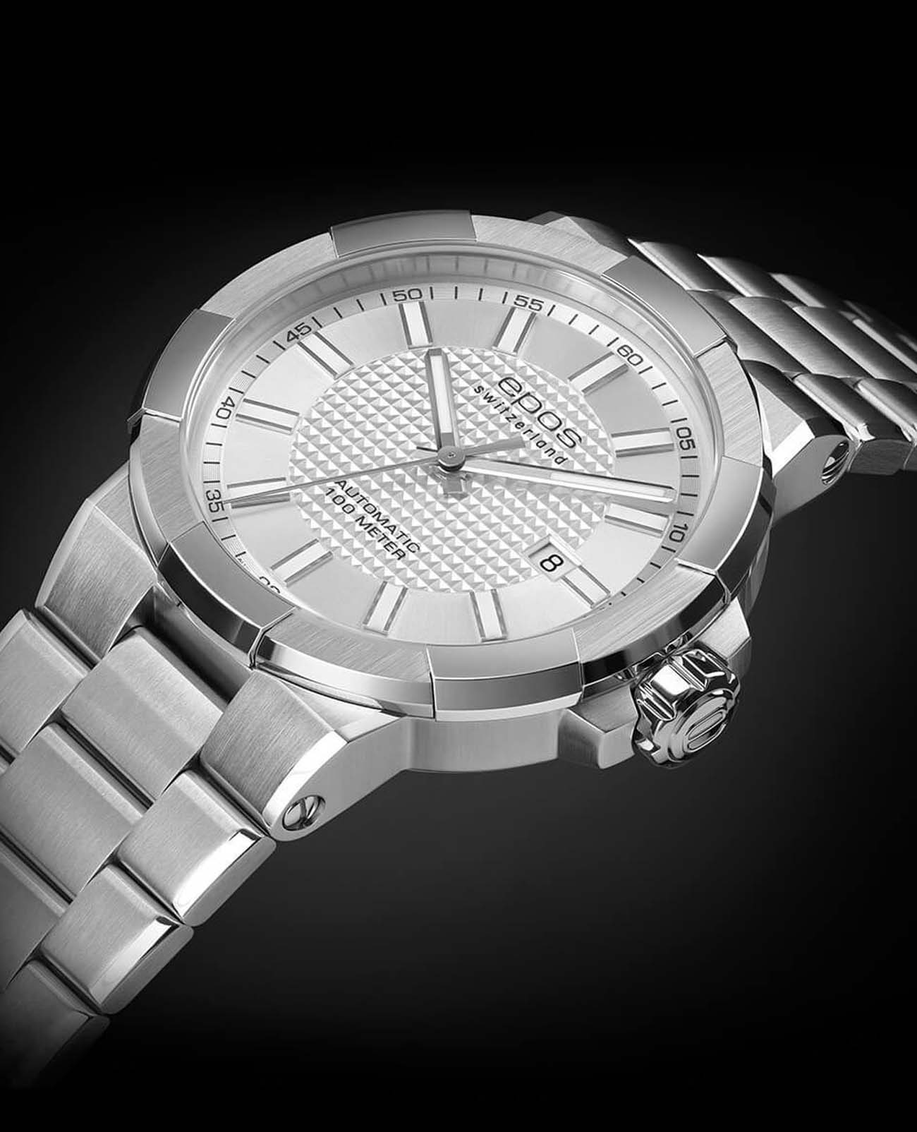 Мужские механические часы с автоподзаводом Epos из коллекции Sportive — это стильный аксессуар с швейцарским качеством и современным дизайном. Корпус диаметром 43,8 мм и толщиной 10,6 мм выполнен из нержавеющей стали 316L. Циферблат серебристого цвета оформлен метками и стрелками с люминесцентным покрытиемЛюминесцентное покрытиеПозволяет считывать показания времени в темноте. Производители наносят на стрелки, часовые индексы, безель или поверхность циферблата светонакопительный состав, дающий холодное свечение., обеспечивающим хорошую читаемость в темноте. Циферблат защищён сапфировым стекломСапфировое стеклоПрочный и надёжный материал из кристалла сапфира синтетического происхождения, характеризующийся особой твёрдостью и устойчивостью к царапинам и повреждениям.. Механизм — швейцарский калибр ETA 2824 с запасом хода 38 часов. Окошко даты расположено в положении 3 часов. Прозрачная задняя крышка позволяет наблюдать за работой декорированного механизма. Часы оснащены стальным браслетом на раскладной застёжкеРаскладная застёжкаТакой тип застёжки используется только на браслетах из металла. Она никогда не раскрывается полностью, происходит разделение на 2 и более частей. Раскладывающая застёжка снизит вероятность потери часов к минимуму.. Водонепроницаемость 100 м позволяет использовать часы для плавания и повседневного ношения. Гарантия — 24 месяца. Универсальный выбор для ценителя механики и элегантного стиля.