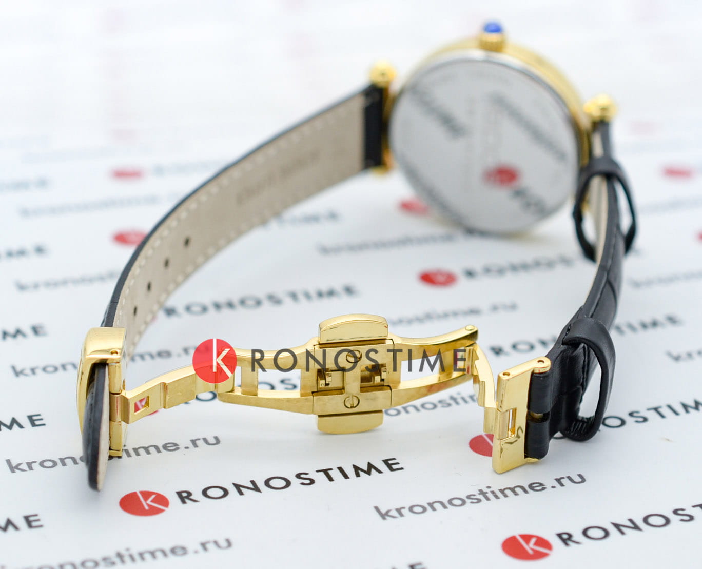Женские швейцарские наручные часы с кварцевым механизмом с высокой точностью. Сапфировое стеклоСапфировое стеклоПрочный и надёжный материал из кристалла сапфира синтетического происхождения, характеризующийся особой твёрдостью и устойчивостью к царапинам и повреждениям. устойчивое к появлению царапин, обладающее высокой прозрачностью. Класс водозащиты: 30 метров, позволит защитить корпус от случайных брызг или капель дождя. Корпус часов изготовлен из стали с PVD-покрытиемPVDУльтратонкое покрытие наносится в технике вакуумного напыления, сочетает в себе нитрид титана особой прочности со слоем золота или оксида хрома. Несёт в себе декоративную или защитную функцию.. Кожаный ремешок с классической застежкой.<br>