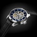 Мужские механические часы с автоподзаводом Epos из коллекции Passion — это сочетание швейцарского мастерства и современного дизайна. Корпус диаметром 41 мм и толщиной 11 мм выполнен из нержавеющей стали 316L. Циферблат синего цвета частично скелетонизирован, что позволяет наблюдать за работой механизма. Циферблат защищён сапфировым стекломСапфировое стеклоПрочный и надёжный материал из кристалла сапфира синтетического происхождения, характеризующийся особой твёрдостью и устойчивостью к царапинам и повреждениям.. Стрелки и метки с люминесцентным покрытиемЛюминесцентное покрытиеПозволяет считывать показания времени в темноте. Производители наносят на стрелки, часовые индексы, безель или поверхность циферблата светонакопительный состав, дающий холодное свечение., обеспечивающим хорошую читаемость в темноте. Механизм — швейцарский калибр Sellita SW200. Прозрачная задняя крышка открывает вид на декорированный механизм. Часы оснащены кожаным ремешком чёрного цвета с застёжкой «бабочка» с кнопкамиЗастёжка "бабочка"Такой вид застёжки дополняется предохранителями, помогающими избежать случайного раскрытия браслета. Обладают изящным исполнением. . Водонепроницаемость 100 м позволяет использовать часы для плавания и повседневного ношения. Гарантия — 24 месяца. Универсальный выбор для ценителя механики и выразительного стиля.