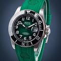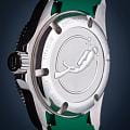 Мужские механические часы с автоподзаводом — это профессиональный дайверский инструмент с швейцарским качеством. Корпус диаметром 41,5 мм и толщиной 13,3 мм выполнен из титана с PVD-покрытиемPVDУльтратонкое покрытие наносится в технике вакуумного напыления, сочетает в себе нитрид титана особой прочности со слоем золота или оксида хрома. Несёт в себе декоративную или защитную функцию., что обеспечивает лёгкость и высокую прочность. Циферблат зелёного цвета оформлен контрастными метками и стрелками. Циферблат защищён сапфировым стекломСапфировое стеклоПрочный и надёжный материал из кристалла сапфира синтетического происхождения, характеризующийся особой твёрдостью и устойчивостью к царапинам и повреждениям.. Механизм — швейцарский калибр Sellita SW200. Окошко даты расположено в положении 3 часов. БезельБезельВнешний ободок, закрепляющий стекло. В спортивных часах так называется поворотное кольцо с делениями на циферблате, выполняет роль таймера – замеряет отрезки времени на шкале. Неподвижный безель – элемент декора. Однонаправленно вращающийся безель на дайверских часах позволяет фиксировать моменты погружения и выныривания на поверхность. — однонаправленный вращающийся. Завинчивающаяся коронка и автоматический гелиевый клапан позволяют использовать часы при глубоководных погружениях. Часы оснащены каучуковым ремешком зелёного цвета с стандартной застёжкой. Водонепроницаемость 500 м соответствует требованиям для профессионального дайвинга. Вес — 98 г. Гарантия — 24 месяца. Идеальный выбор для тех, кто ценит надёжность, точность и экстремальные условия.