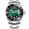 Мужские механические часы с автоподзаводом Epos — это профессиональный дайверский инструмент с швейцарским качеством. Корпус диаметром 41,5 мм и толщиной 13,3 мм выполнен из титана, что обеспечивает лёгкость и высокую прочность. Циферблат зелёного цвета оформлен контрастными метками и стрелками. Циферблат защищён сапфировым стекломСапфировое стеклоПрочный и надёжный материал из кристалла сапфира синтетического происхождения, характеризующийся особой твёрдостью и устойчивостью к царапинам и повреждениям.. Механизм — швейцарский калибр Sellita SW200. Окошко даты расположено в положении 3 часов. БезельБезельВнешний ободок, закрепляющий стекло. В спортивных часах так называется поворотное кольцо с делениями на циферблате, выполняет роль таймера – замеряет отрезки времени на шкале. Неподвижный безель – элемент декора. Однонаправленно вращающийся безель на дайверских часах позволяет фиксировать моменты погружения и выныривания на поверхность. — однонаправленный вращающийся. Завинчивающаяся коронка и автоматический гелиевый клапан позволяют использовать часы при глубоководных погружениях. Часы оснащены титановым браслетом на раскладной застёжкеРаскладная застёжкаТакой тип застёжки используется только на браслетах из металла. Она никогда не раскрывается полностью, происходит разделение на 2 и более частей. Раскладывающая застёжка снизит вероятность потери часов к минимуму.. Водонепроницаемость 500 м соответствует требованиям для профессионального дайвинга. Гарантия — 24 месяца. Идеальный выбор для тех, кто ценит надёжность, точность и экстремальные условия.