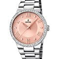 Яркий стиль и функциональность этих часов придутся по душе активной девушке. Кварцевый механизм с высокой точностью. Минеральное стеклоМинеральное стеклоМинеральное стекло представляет собой искусственно выращенный минерал кварца. Такое стекло отличается особой устойчивостью к повреждениям и царапинам. Уступает по некоторым качествам сапфировому стеклу. устойчивое к появлению царапин, обладающее высокой прозрачностью. Класс водозащиты: 50 метров, позволит защитить корпус от случайных брызг или капель дождя. Корпус часов изготовлен из нержавеющей стали 316L. БезельБезельВнешний ободок, закрепляющий стекло. В спортивных часах так называется поворотное кольцо с делениями на циферблате, выполняет роль таймера – замеряет отрезки времени на шкале. Неподвижный безель – элемент декора. Однонаправленно вращающийся безель на дайверских часах позволяет фиксировать моменты погружения и выныривания на поверхность. украшен фианитами. Браслет с раскладной застёжкойРаскладная застёжкаТакой тип застёжки используется только на браслетах из металла. Она никогда не раскрывается полностью, происходит разделение на 2 и более частей. Раскладывающая застёжка снизит вероятность потери часов к минимуму..