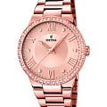 Яркий стиль и функциональность этих часов придутся по душе активной девушке. Кварцевый механизм с высокой точностью. Минеральное стеклоМинеральное стеклоМинеральное стекло представляет собой искусственно выращенный минерал кварца. Такое стекло отличается особой устойчивостью к повреждениям и царапинам. Уступает по некоторым качествам сапфировому стеклу. устойчивое к появлению царапин, обладающее высокой прозрачностью. Класс водозащиты: 50 метров, позволит защитить корпус от случайных брызг или капель дождя. Корпус часов изготовлен из нержавеющей стали 316L с PVDPVDУльтратонкое покрытие наносится в технике вакуумного напыления, сочетает в себе нитрид титана особой прочности со слоем золота или оксида хрома. Несёт в себе декоративную или защитную функцию. покрытием. БезельБезельВнешний ободок, закрепляющий стекло. В спортивных часах так называется поворотное кольцо с делениями на циферблате, выполняет роль таймера – замеряет отрезки времени на шкале. Неподвижный безель – элемент декора. Однонаправленно вращающийся безель на дайверских часах позволяет фиксировать моменты погружения и выныривания на поверхность. украшен фианитами. Браслет с раскладной застёжкойРаскладная застёжкаТакой тип застёжки используется только на браслетах из металла. Она никогда не раскрывается полностью, происходит разделение на 2 и более частей. Раскладывающая застёжка снизит вероятность потери часов к минимуму..