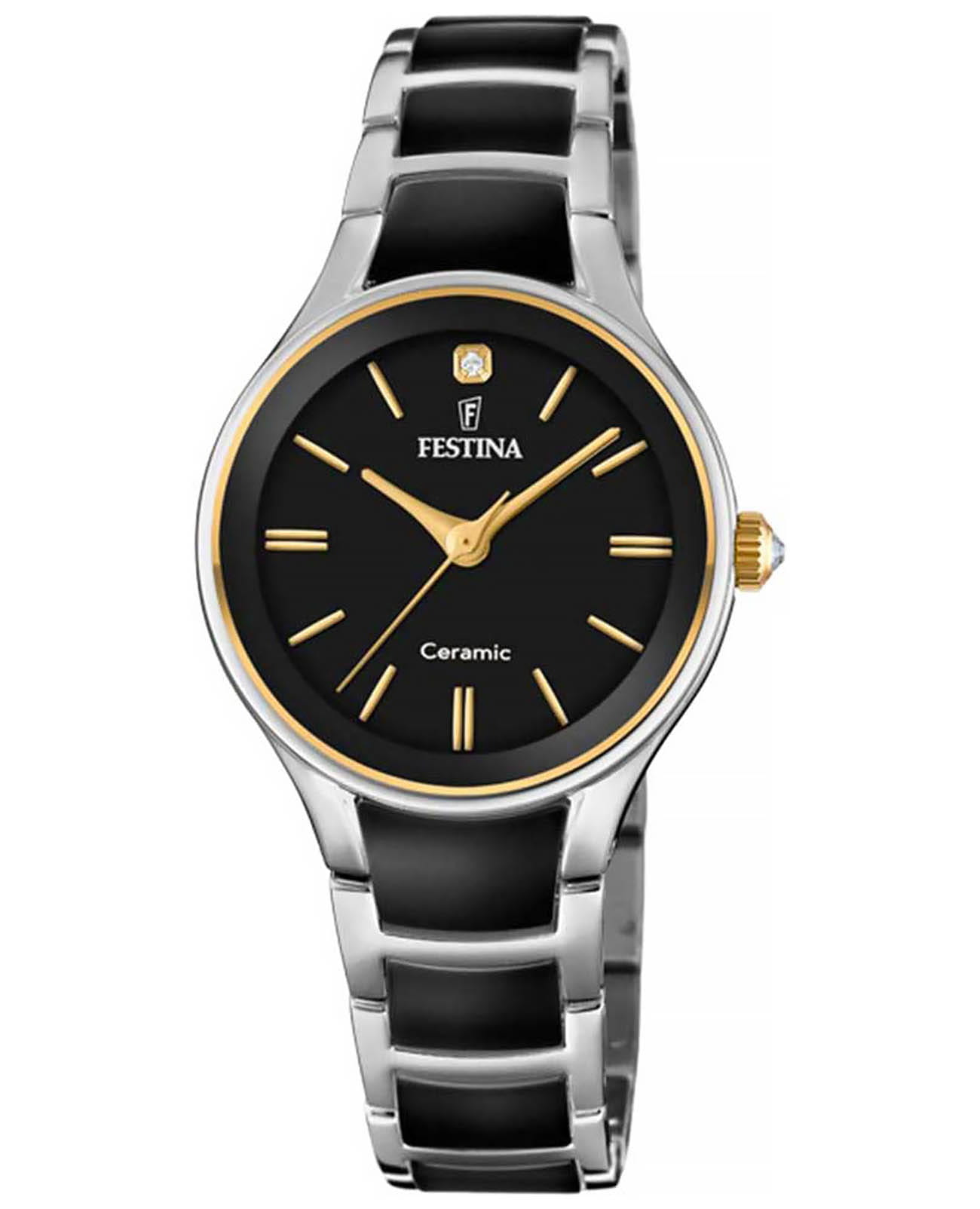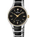 Яркий стиль и функциональность этих часов придутся по душе активной девушке. Кварцевый механизм с высокой точностью. Минеральное стеклоМинеральное стеклоМинеральное стекло представляет собой искусственно выращенный минерал кварца. Такое стекло отличается особой устойчивостью к повреждениям и царапинам. Уступает по некоторым качествам сапфировому стеклу. устойчивое к появлению царапин, обладающее высокой прозрачностью. Керамический неподвижный безельБезельВнешний ободок, закрепляющий стекло. В спортивных часах так называется поворотное кольцо с делениями на циферблате, выполняет роль таймера – замеряет отрезки времени на шкале. Неподвижный безель – элемент декора. Однонаправленно вращающийся безель на дайверских часах позволяет фиксировать моменты погружения и выныривания на поверхность.. Класс водозащиты: 50 метров, позволит защитить корпус от случайных брызг или капель дождя. Корпус часов изготовлен из нержавеющей стали. Браслет с керамическими вставками и с раскладной застёжкойРаскладная застёжкаТакой тип застёжки используется только на браслетах из металла. Она никогда не раскрывается полностью, происходит разделение на 2 и более частей. Раскладывающая застёжка снизит вероятность потери часов к минимуму..