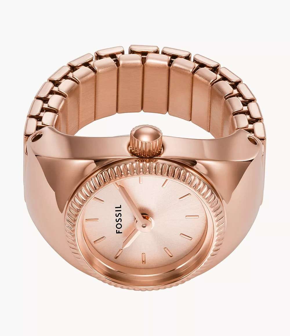 Часы-кольцо Fossil Watch Ring ES5247 — это уникальный аксессуар, который гармонично сочетает в себе стиль и функциональность, идеально подходя для женщин, стремящихся подчеркнуть свою индивидуальность. Эти часы-кольцо, созданные в США, представляют собой пример высокого качества и продуманного дизайна. Изделие оснащено надежным кварцевым механизмом, который гарантирует точность и долговечность. Корпус и кольцо выполнены из нержавеющей стали 316L с IP-покрытиемIP-покрытиеМетод ионного напыления. Демонстрирует повышенную устойчивость к истиранию, окислению и химическим веществам. Под воздействием высокого давления и температуры около 1500°C молекулы металла надёжно соединяются с частицами корпуса часов. в цвете розового золота, что придаёт модели элегантный и современный вид. Диаметр корпуса составляет 15 мм, а ширина кольца — 6 мм, что делает часы изящными и утонченными на женском пальце. Минеральное стеклоМинеральное стеклоМинеральное стекло представляет собой искусственно выращенный минерал кварца. Такое стекло отличается особой устойчивостью к повреждениям и царапинам. Уступает по некоторым качествам сапфировому стеклу.  обеспечивает защиту от царапин и других механических повреждений, сохраняя внешний вид аксессуара в идеальном состоянии. Особое внимание привлекает рифленый безельБезельВнешний ободок, закрепляющий стекло. В спортивных часах так называется поворотное кольцо с делениями на циферблате, выполняет роль таймера – замеряет отрезки времени на шкале. Неподвижный безель – элемент декора. Однонаправленно вращающийся безель на дайверских часах позволяет фиксировать моменты погружения и выныривания на поверхность. с розовым IP-покрытиемIP-покрытиеМетод ионного напыления. Демонстрирует повышенную устойчивость к истиранию, окислению и химическим веществам. Под воздействием высокого давления и температуры около 1500°C молекулы металла надёжно соединяются с частицами корпуса часов.. Часы обладают водозащитой до 5 АТМ, что делает их устойчивыми к брызгам воды и каплям дождя, позволяя вам не беспокоиться о случайных контактах с водой. Рифленая заводная головка добавляет дополнительный элемент удобства и завершённости дизайна.