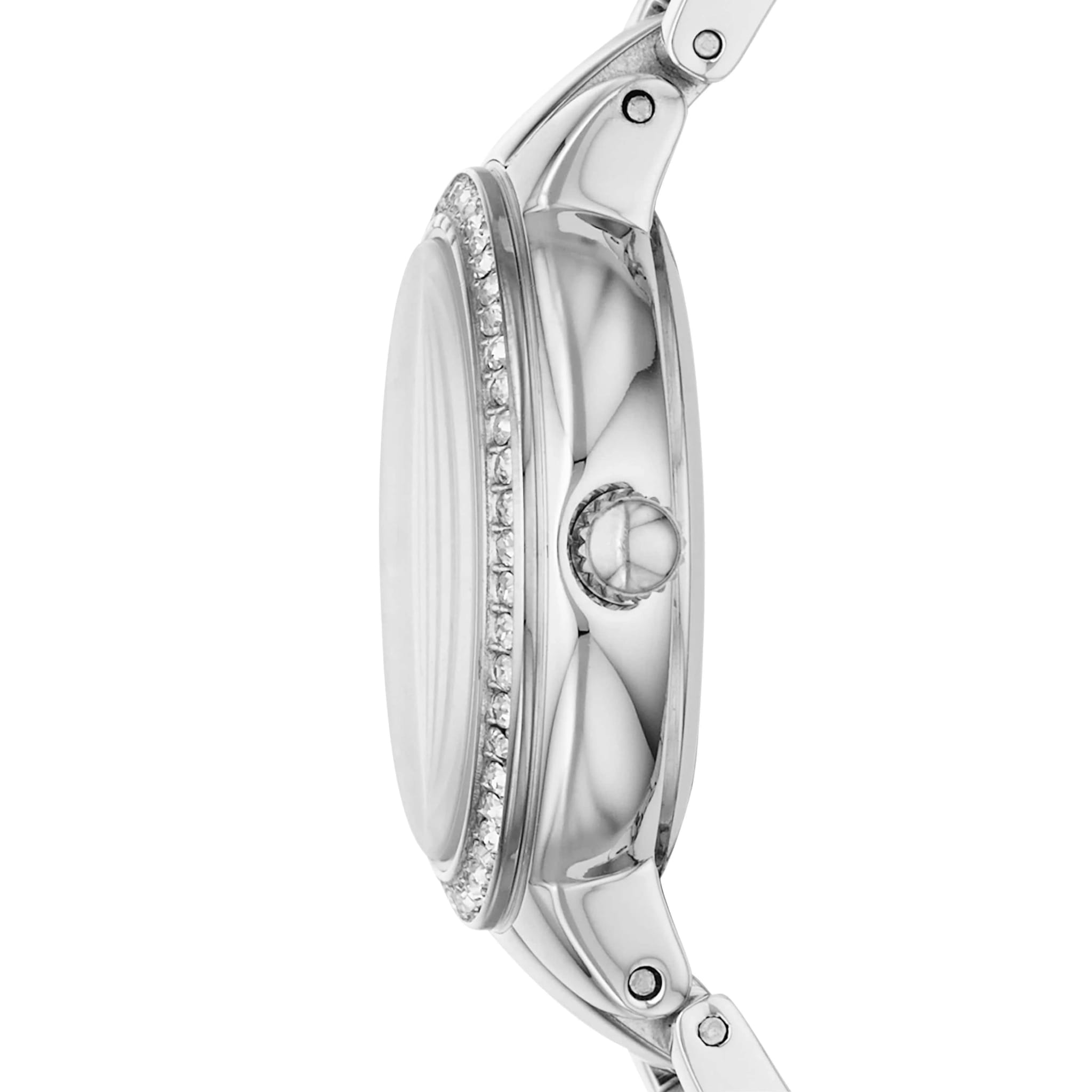 Американские женские наручные часы Fossil Georgia ES3504, кварцевый механизм с высокой точностью. Класс водозащиты: 50 метров, позволит защитить корпус от случайных брызг или капель дождя. Корпус часов изготовлен из нержавеющей стали 316L. Браслет часов сделан из нержавеющей стали и украшен кристаллами.