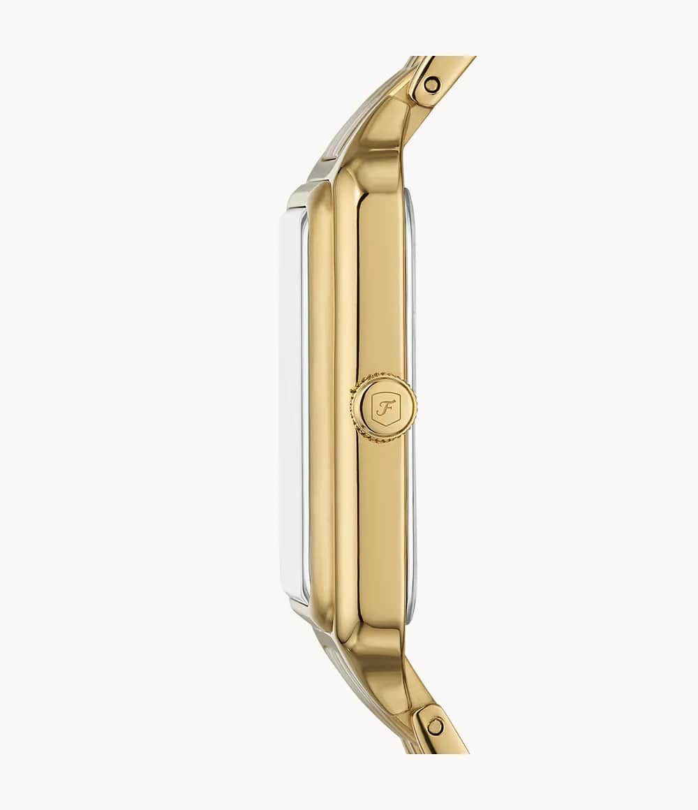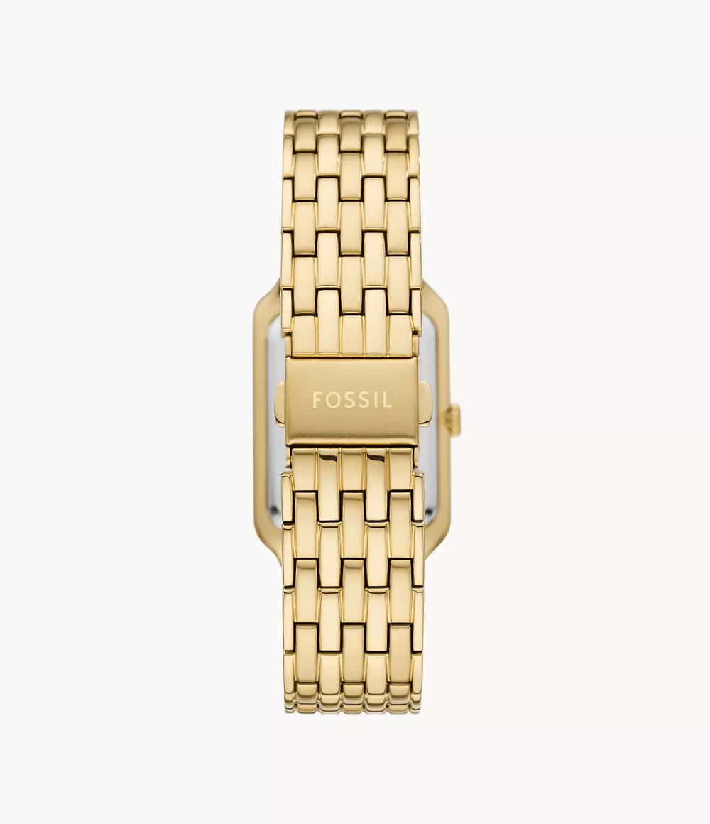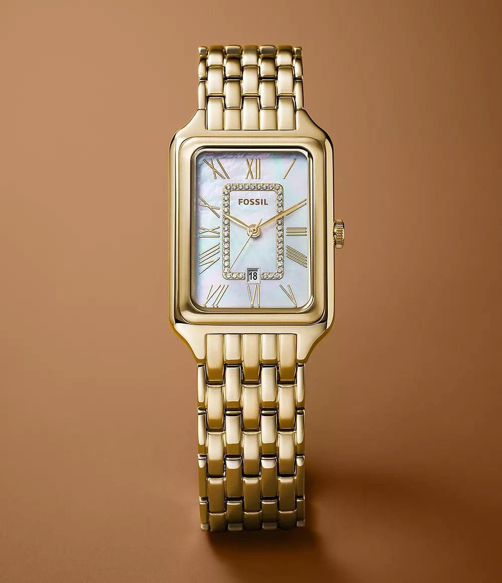 Женские американские часы с минеральным стекломМинеральное стеклоМинеральное стекло представляет собой искусственно выращенный минерал кварца. Такое стекло отличается особой устойчивостью к повреждениям и царапинам. Уступает по некоторым качествам сапфировому стеклу. Fossil Raquel ES5304, кварцевый механизм с высокой точностью. Корпус и браслет часов изготовлены из нержавеющей стали с PVD-покрытиемPVDУльтратонкое покрытие наносится в технике вакуумного напыления, сочетает в себе нитрид титана особой прочности со слоем золота или оксида хрома. Несёт в себе декоративную или защитную функцию.. Класс водозащиты: 50 метров, позволит защитить корпус от случайных брызг или капель дождя. Стальной браслет на раскладной застёжкеРаскладная застёжкаТакой тип застёжки используется только на браслетах из металла. Она никогда не раскрывается полностью, происходит разделение на 2 и более частей. Раскладывающая застёжка снизит вероятность потери часов к минимуму.. Окошко даты находится в положении 6 часов. Циферблат украшен кристаллами.