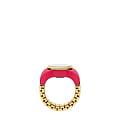 Женские кварцевые часы-кольцо Fossil — это изысканный и универсальный аксессуар, сочетающий модный дизайн и функциональность. Модель ES5414 выполнена в виде кольца с круглым корпусом диаметром 15 мм из нержавеющей стали с покрытием цвета жёлтого золота и глянцевым розовым керамическим напылением. Циферблат розового цвета оформлен двумя стрелками без индикации даты. Циферблат защищён минеральным стекломМинеральное стеклоМинеральное стекло представляет собой искусственно выращенный минерал кварца. Такое стекло отличается особой устойчивостью к повреждениям и царапинам. Уступает по некоторым качествам сапфировому стеклу.. Часы оснащены расширяемым браслетом (expansion band) из стали с IP-покрытиемIP-покрытиеМетод ионного напыления. Демонстрирует повышенную устойчивость к истиранию, окислению и химическим веществам. Под воздействием высокого давления и температуры около 1500°C молекулы металла надёжно соединяются с частицами корпуса часов. цвета жёлтого золота, не имеющим застёжки, что обеспечивает удобную посадку на пальце (размер кольца 6,5–8). Водонепроницаемость 50 м позволяет использовать часы в повседневных условиях. Идеальный выбор для тех, кто ценит стиль и американское качество.