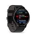 Умные многофункциональные мужские часы Garmin Venu 3 010-02784-52, электронный механизм с высокой точностью. Класс водозащиты: 50 метров, позволит защитить корпус от случайных брызг или капель дождя. Материал корпуса: пластик. Циферблат с минеральным стекломМинеральное стеклоМинеральное стекло представляет собой искусственно выращенный минерал кварца. Такое стекло отличается особой устойчивостью к повреждениям и царапинам. Уступает по некоторым качествам сапфировому стеклу.. Экран с светодиодной подсветкойСветодиодная подсветкаСветодиодная или LED-подсветка обеспечивает появление яркого холодного свечения за счёт LED-элементов - маленьких лампочек. Они потребляют минимальное количество энергии, чаще всего можно встретить 1 светодиод, в нижней части циферблата..БезельБезельВнешний ободок, закрепляющий стекло. В спортивных часах так называется поворотное кольцо с делениями на циферблате, выполняет роль таймера – замеряет отрезки времени на шкале. Неподвижный безель – элемент декора. Однонаправленно вращающийся безель на дайверских часах позволяет фиксировать моменты погружения и выныривания на поверхность. из нержавеющей стали. Кожаный ремешок на стандартной застёжке.