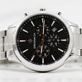 Мужские часы-хронографХронографФункция позволяет измерять отрезки времени с особой точностью: часы, минуты, секунды. Верным признаком хронографа является наличие на циферблате 3 дополнительных окошек-счётчиков.Greenwich Skipper GW 043.10.35, кварцевый механизм с высокой точностью. Минеральное стеклоМинеральное стеклоМинеральное стекло представляет собой искусственно выращенный минерал кварца. Такое стекло отличается особой устойчивостью к повреждениям и царапинам. Уступает по некоторым качествам сапфировому стеклу. устойчивое к появлению царапин, обладающее высокой прозрачностью. Корпус изготовлен из нержавеющей стали. В часах установлен надежный японский механизм с функциями: часы, минуты, секунды, дата, 24-х часовой индикатор. Окошко даты находится в положении между 4 и 5 часами. Стрелки с люминесцентным покрытиемЛюминесцентное покрытиеПозволяет считывать показания времени в темноте. Производители наносят на стрелки, часовые индексы, безель или поверхность циферблата светонакопительный состав, дающий холодное свечение.. Класс водозащиты: 100 метров, позволит плавать, нырять и заниматься другими водными видами спорта. Стальной браслет на раскладной застёжкеРаскладная застёжкаТакой тип застёжки используется только на браслетах из металла. Она никогда не раскрывается полностью, происходит разделение на 2 и более частей. Раскладывающая застёжка снизит вероятность потери часов к минимуму..