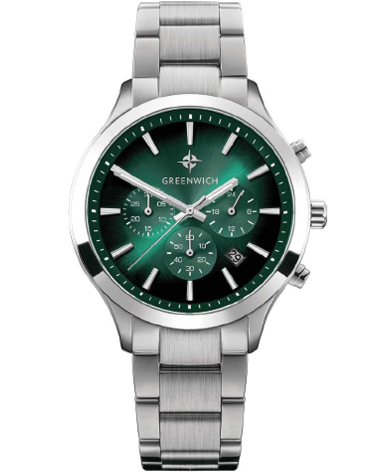 Мужские наручные часы Greenwich Skipper GW 043.10.37 представляют собой классический вариант для повседневной носки. Корпус из нержавеющей стали диаметром 42 мм сбалансирован и элегантен. Минеральное стеклоМинеральное стеклоМинеральное стекло представляет собой искусственно выращенный минерал кварца. Такое стекло отличается особой устойчивостью к повреждениям и царапинам. Уступает по некоторым качествам сапфировому стеклу. защищает циферблат от царапин и обеспечивает отличную читаемость при любом освещении. Люминесцентное покрытиеЛюминесцентное покрытиеПозволяет считывать показания времени в темноте. Производители наносят на стрелки, часовые индексы, безель или поверхность циферблата светонакопительный состав, дающий холодное свечение. стрелок и меток позволит следить за временем даже в полной темноте. Стальной браслет на раскладной застёжкеРаскладная застёжкаТакой тип застёжки используется только на браслетах из металла. Она никогда не раскрывается полностью, происходит разделение на 2 и более частей. Раскладывающая застёжка снизит вероятность потери часов к минимуму. идеально дополняют дизайн часов, обеспечивая комфортное ношение. Класс водозащиты: 100 метров, позволит плавать, нырять и заниматься другими водными видами спорта. Дополнительные индикаторы: 24-х часов, даты, счетчиками минут и секунд. В положении «5 часов» находится окошко даты. Крупные кнопки хронографаХронографФункция позволяет измерять отрезки времени с особой точностью: часы, минуты, секунды. Верным признаком хронографа является наличие на циферблате 3 дополнительных окошек-счётчиков. и рифленая заводная головка удобны в использовании. На заводной головке и задней крышке расположился логотип: стилизованное изображение розы ветров. На задней крышке — гравировка корабля, плывущего навстречу приключениям.