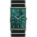 Кварцевые часы Greenwich Electra GW 521.10.38 созданы для поклонников минимализма. Корпус из нержавеющей стали выполнен в форме прямоугольника 20 x 28 мм, а это значит, что их могут смело выбирать даже обладательницы самого изящного запястья. На циферблате хорошо читаются полированные риски и стрелки часов, минут и секунд – они контрастно выделяются на темно-зеленом фоне. Стальной браслет на застёжке «бабочка» с кнопкамиЗастёжка "бабочка"Такой вид застёжки дополняется предохранителями, помогающими избежать случайного раскрытия браслета. Обладают изящным исполнением. состоит из двух частей: полированное обрамление из нержавеющей стали и звенья из керамики. Благодаря такому сочетанию браслет надолго сохранит первоначальный внешний вид. Минеральное стеклоМинеральное стеклоМинеральное стекло представляет собой искусственно выращенный минерал кварца. Такое стекло отличается особой устойчивостью к повреждениям и царапинам. Уступает по некоторым качествам сапфировому стеклу. защищает циферблат от царапин. На задней крышке часов — гравировка в виде корабля, на всех парусах несущегося на встречу приключениям.