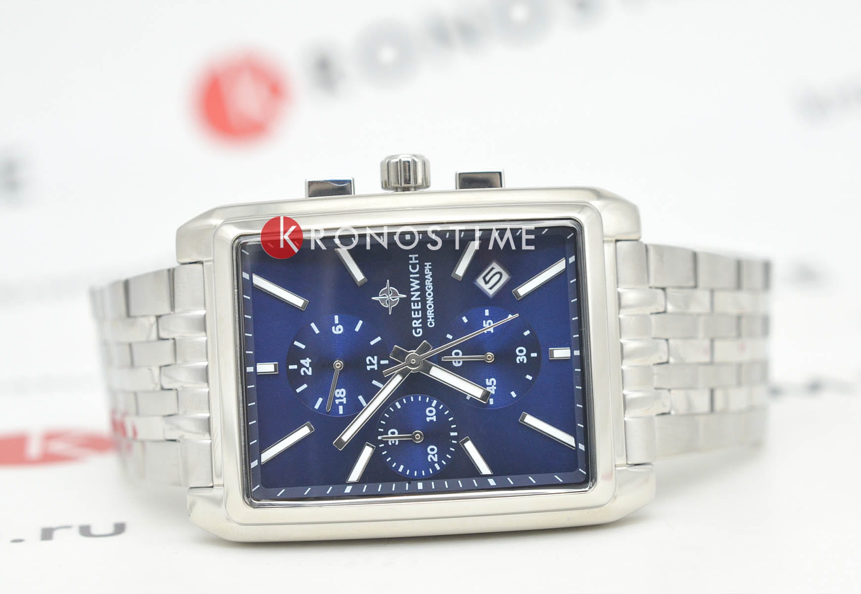 Часы-хронографХронографФункция позволяет измерять отрезки времени с особой точностью: часы, минуты, секунды. Верным признаком хронографа является наличие на циферблате 3 дополнительных окошек-счётчиков. серии Galeon – находка для тех, кто предпочитает классический стиль, актуальный вне зависимости от капризов моды. Минеральное стеклоМинеральное стеклоМинеральное стекло представляет собой искусственно выращенный минерал кварца. Такое стекло отличается особой устойчивостью к повреждениям и царапинам. Уступает по некоторым качествам сапфировому стеклу.. Кварцевый механизм Miyota отсчитывает часы, минуты и секунды. На циферблате синего цвета с полировкой в виде солнечных лучей хорошо читаются крупные риски и стрелки с люминесцентным покрытиемЛюминесцентное покрытиеПозволяет считывать показания времени в темноте. Производители наносят на стрелки, часовые индексы, безель или поверхность циферблата светонакопительный состав, дающий холодное свечение.. Корпус из нержавеющей стали имеет эргономичную форму, которая позволяет часам удобно ложиться на запястье.