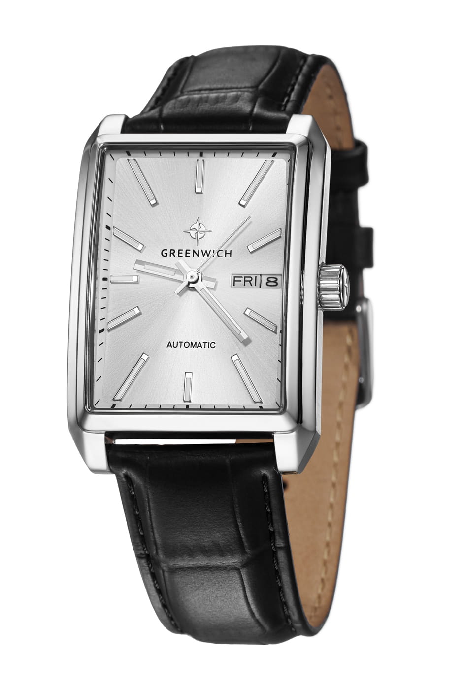 Часы Greenwich GW 564.11.13 из коллекции Caravel — элегантная мужская модель, сочетающая классический дизайн и современные технологии. Корпус размером 33 x 40 мм выполнен из гипоаллергенной нержавеющей стали. Белый циферблат с люминесцентными стрелками и часовыми метками для удобного считывания в темноте защищён минеральным стекломМинеральное стеклоМинеральное стекло представляет собой искусственно выращенный минерал кварца. Такое стекло отличается особой устойчивостью к повреждениям и царапинам. Уступает по некоторым качествам сапфировому стеклу.. Дополнительно на циферблате отображаются дата и день недели в положении «3 часа».
