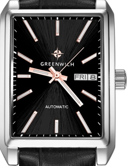 Мужские часы с минеральным стекломМинеральное стеклоМинеральное стекло представляет собой искусственно выращенный минерал кварца. Такое стекло отличается особой устойчивостью к повреждениям и царапинам. Уступает по некоторым качествам сапфировому стеклу. Greenwich Caravel GW 564.11.15, представляют собой классический вариант для повседневной носки. Корпус часов выполнен из нержавеющей стали. Окошко даты и дня недели находится в положении 3 часа. Стрелки с люминесцентным покрытиемЛюминесцентное покрытиеПозволяет считывать показания времени в темноте. Производители наносят на стрелки, часовые индексы, безель или поверхность циферблата светонакопительный состав, дающий холодное свечение.. Кожаный ремешок на стандартной застежке.