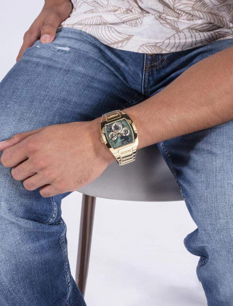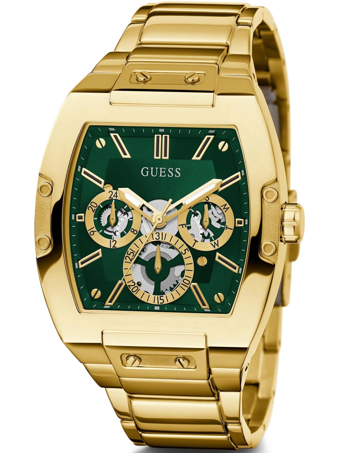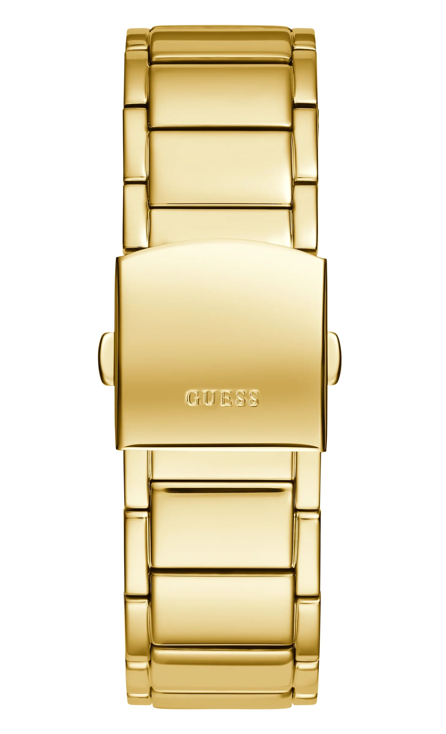 Мужские наручные часы Guess Trend GW0456G3 с минеральным стекломМинеральное стеклоМинеральное стекло представляет собой искусственно выращенный минерал кварца. Такое стекло отличается особой устойчивостью к повреждениям и царапинам. Уступает по некоторым качествам сапфировому стеклу., кварцевый механизм с высокой точностью. Класс водозащиты: 50 метров, позволит защитить корпус от случайных брызг или капель дождя. Корпус часов изготовлен из стали с IP-покрытиемIP-покрытиеМетод ионного напыления. Демонстрирует повышенную устойчивость к истиранию, окислению и химическим веществам. Под воздействием высокого давления и температуры около 1500°C молекулы металла надёжно соединяются с частицами корпуса часов.. Браслет с раскладной застёжкойРаскладная застёжкаТакой тип застёжки используется только на браслетах из металла. Она никогда не раскрывается полностью, происходит разделение на 2 и более частей. Раскладывающая застёжка снизит вероятность потери часов к минимуму.
