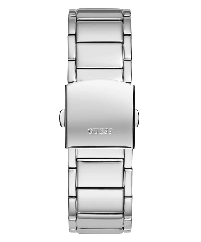 Мужские наручные часы Guess Trend GW0456G4 с минеральным стекломМинеральное стеклоМинеральное стекло представляет собой искусственно выращенный минерал кварца. Такое стекло отличается особой устойчивостью к повреждениям и царапинам. Уступает по некоторым качествам сапфировому стеклу., кварцевый механизм с высокой точностью. Класс водозащиты: 50 метров, позволит защитить корпус от случайных брызг или капель дождя. Корпус часов изготовлен из стали с IP-покрытиемIP-покрытиеМетод ионного напыления. Демонстрирует повышенную устойчивость к истиранию, окислению и химическим веществам. Под воздействием высокого давления и температуры около 1500°C молекулы металла надёжно соединяются с частицами корпуса часов.. Стальной браслет с раскладной застёжкойРаскладная застёжкаТакой тип застёжки используется только на браслетах из металла. Она никогда не раскрывается полностью, происходит разделение на 2 и более частей. Раскладывающая застёжка снизит вероятность потери часов к минимуму.