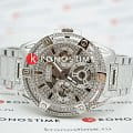 Женские наручные часы-скелетоны Guess Queen GW0464L1 с минеральным стекломМинеральное стеклоМинеральное стекло представляет собой искусственно выращенный минерал кварца. Такое стекло отличается особой устойчивостью к повреждениям и царапинам. Уступает по некоторым качествам сапфировому стеклу., кварцевый механизм с высокой точностью. Класс водозащиты: 30 метров, позволит защитить корпус от случайных брызг или капель дождя. Корпус часов изготовлен из стали. Браслет с раскладной застёжкойРаскладная застёжкаТакой тип застёжки используется только на браслетах из металла. Она никогда не раскрывается полностью, происходит разделение на 2 и более частей. Раскладывающая застёжка снизит вероятность потери часов к минимуму.. 12-ти и 24-х часовой формат времени, дата и день недели вынесены на отдельные циферблаты. Метки в виде штрихов. Рифленая заводная головка с защитой. Стрелки с люминесцентным покрытиемЛюминесцентное покрытиеПозволяет считывать показания времени в темноте. Производители наносят на стрелки, часовые индексы, безель или поверхность циферблата светонакопительный состав, дающий холодное свечение..