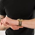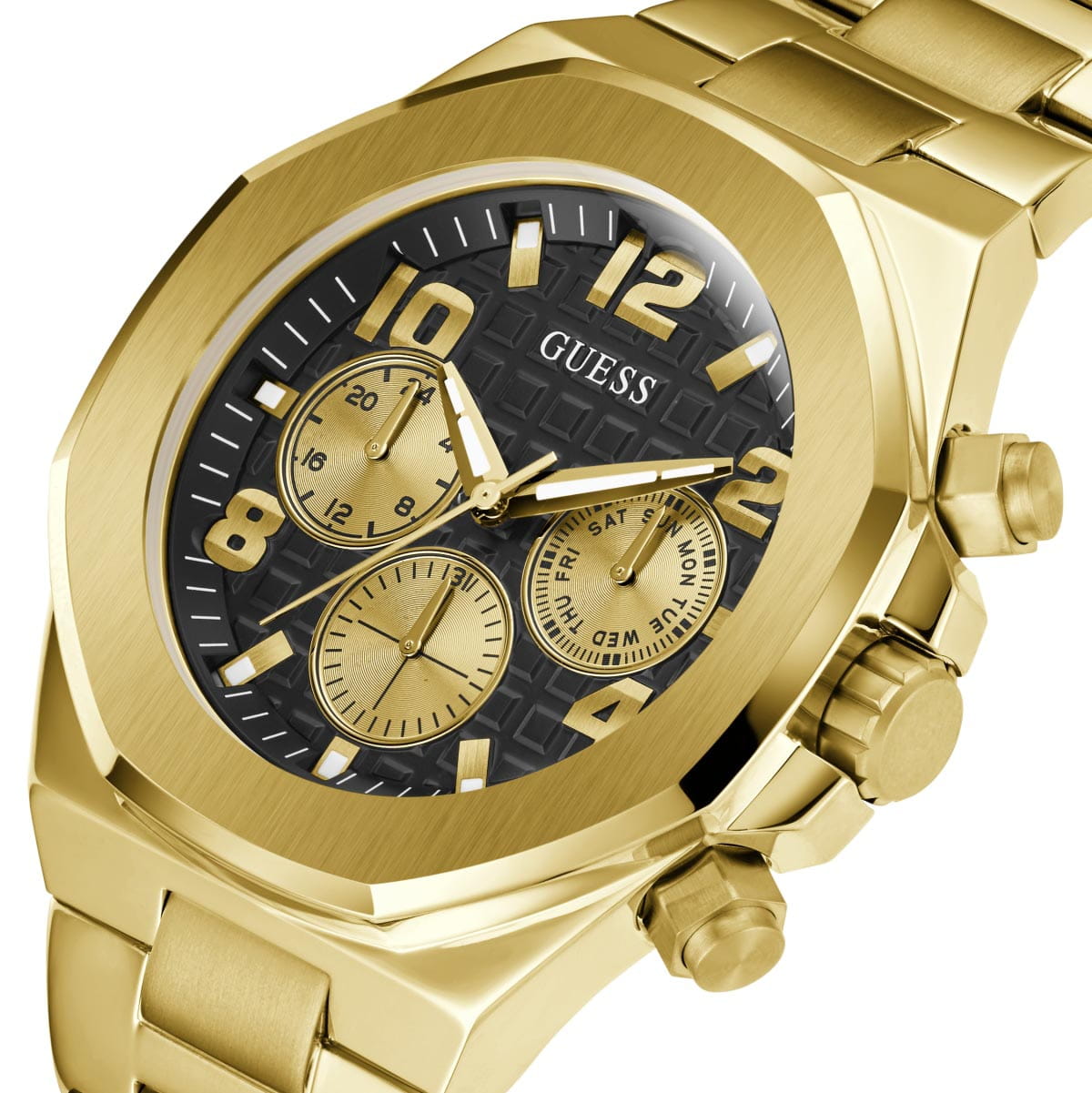 Мужские наручные часы с минеральным стекломМинеральное стеклоМинеральное стекло представляет собой искусственно выращенный минерал кварца. Такое стекло отличается особой устойчивостью к повреждениям и царапинам. Уступает по некоторым качествам сапфировому стеклу. Guess Empire GW0489G2, кварцевый механизм с высокой точностью. Класс водозащиты: 50 метров, позволит защитить корпус от случайных брызг или капель дождя. Корпус часов изготовлен из стали с IP-покрытиемIP-покрытиеМетод ионного напыления. Демонстрирует повышенную устойчивость к истиранию, окислению и химическим веществам. Под воздействием высокого давления и температуры около 1500°C молекулы металла надёжно соединяются с частицами корпуса часов.. Стальной браслет на раскладной застёжкеРаскладная застёжкаТакой тип застёжки используется только на браслетах из металла. Она никогда не раскрывается полностью, происходит разделение на 2 и более частей. Раскладывающая застёжка снизит вероятность потери часов к минимуму. с IP-покрытиемIP-покрытиеМетод ионного напыления. Демонстрирует повышенную устойчивость к истиранию, окислению и химическим веществам. Под воздействием высокого давления и температуры около 1500°C молекулы металла надёжно соединяются с частицами корпуса часов.. Стрелки с люминесцентным покрытиемЛюминесцентное покрытиеПозволяет считывать показания времени в темноте. Производители наносят на стрелки, часовые индексы, безель или поверхность циферблата светонакопительный состав, дающий холодное свечение.. 12-ти и 24-х часовой формат времени, дата и день недели вынесены на отдельные циферблаты. Метки в виде штрихов и арабских цифр. Рифленая заводная головка с защитой.
