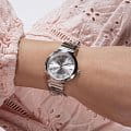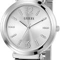 Женские кварцевые наручные часы с минеральным стекломМинеральное стеклоМинеральное стекло представляет собой искусственно выращенный минерал кварца. Такое стекло отличается особой устойчивостью к повреждениям и царапинам. Уступает по некоторым качествам сапфировому стеклу. Guess G Cluster GW0545L1, кварцевый механизм с высокой точностью. Класс водозащиты: 30 метров, позволит защитить корпус от случайных брызг или капель дождя. Корпус часов изготовлен из стали. Стальной браслет на ювелирной застёжке. Циферблат инкрустирован кристаллами.