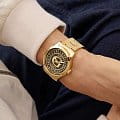 Мужские наручные часы Guess GW0888G2 представляют собой идеальное сочетание современного дизайна и функциональности. Кварцевый механизм гарантирует высокую точность хода, а стальной корпус с золотистым IP-покрытиемIP-покрытиеМетод ионного напыления. Демонстрирует повышенную устойчивость к истиранию, окислению и химическим веществам. Под воздействием высокого давления и температуры около 1500°C молекулы металла надёжно соединяются с частицами корпуса часов. придает аксессуару стильный и устойчивый к внешним воздействиям вид. Диаметр корпуса создает гармонию между элегантностью и практичностью, делая часы привлекательным дополнением к любому образу. Черный циферблат, выполненный по технологии Sunray, создает эффект солнечных лучей, добавляя глубины и игры света при каждом движении. Люминесцентное покрытиеЛюминесцентное покрытиеПозволяет считывать показания времени в темноте. Производители наносят на стрелки, часовые индексы, безель или поверхность циферблата светонакопительный состав, дающий холодное свечение. на стрелках обеспечивает отличную видимость в темноте. Рифленая заводная головка добавляет изделию изысканный акцент и подчеркивает внимание к деталям. Стальной браслет с золотистым IP-покрытиемIP-покрытиеМетод ионного напыления. Демонстрирует повышенную устойчивость к истиранию, окислению и химическим веществам. Под воздействием высокого давления и температуры около 1500°C молекулы металла надёжно соединяются с частицами корпуса часов. обеспечивает надежность и долговечность, а раскладная застежкаРаскладная застёжкаТакой тип застёжки используется только на браслетах из металла. Она никогда не раскрывается полностью, происходит разделение на 2 и более частей. Раскладывающая застёжка снизит вероятность потери часов к минимуму. гарантирует удобство и безопасность при ношении. Водозащита 30WR защищает часы от случайных брызг и дождя, что делает их подходящими для повседневной жизни. Минеральное стеклоМинеральное стеклоМинеральное стекло представляет собой искусственно выращенный минерал кварца. Такое стекло отличается особой устойчивостью к повреждениям и царапинам. Уступает по некоторым качествам сапфировому стеклу. защищает циферблат от царапин, сохраняя его первозданный вид. Эти часы станут отличным выбором для мужчин, ценящих качество, стиль и надежность в одном аксессуаре.