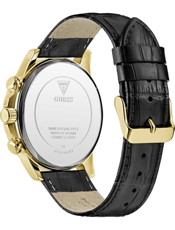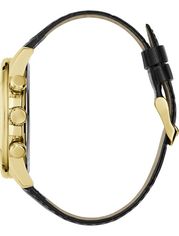 Стильные и функциональные часы Guess GW0901G4 оснащены кварцевым механизмом, что обеспечивает точность и надежность в использовании. Корпус выполнен из прочной стали с золотистым PVD-покрытиемPVDУльтратонкое покрытие наносится в технике вакуумного напыления, сочетает в себе нитрид титана особой прочности со слоем золота или оксида хрома. Несёт в себе декоративную или защитную функцию., придающей изделиям утонченный и современный вид. Циферблат украшен метками в виде штрихов и римской цифрой XII, обеспечивающими легкое считывание времени. Время отображается в двух форматах — 12-ти и 24-х часовом, что удобно для тех, кто привык к разным системам времени. Дополнительные циферблаты показывают дату и день недели, что позволяет всегда быть в курсе текущей даты без необходимости использования других устройств. Часы также оснащены тахиметромТахиметрРазмеченная шкала, располагается на ободке или безеле часов. Тахиметр позволяет рассчитать скорость на определённом участке пути, расстояние измеряется в километрах или милях., что добавляет им функциональности и может быть полезно для измерения скорости. Люминесцентное покрытиеЛюминесцентное покрытиеПозволяет считывать показания времени в темноте. Производители наносят на стрелки, часовые индексы, безель или поверхность циферблата светонакопительный состав, дающий холодное свечение. на стрелках и метках обеспечивает отличную видимость в темноте. Минеральное стеклоМинеральное стеклоМинеральное стекло представляет собой искусственно выращенный минерал кварца. Такое стекло отличается особой устойчивостью к повреждениям и царапинам. Уступает по некоторым качествам сапфировому стеклу. защищает циферблат от царапин и повреждений, а водозащита 50WR позволяет не волноваться о случайных контактах с водой, например, во время дождя. Кожаный черный ремешок с классической застежкой обеспечивает надежную фиксацию часов на руке и комфорт в ношении. Рифленая заводная головка с защитой добавляет изысканности и одновременно защищает механизм от повреждений. Эти часы идеально подойдут для тех, кто ценит стиль, функциональность и качество в одном аксессуаре.