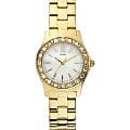 Женские наручные часы Guess Sport W0025L2 — изысканный аксессуар, сочетающий в себе элегантность и современный стиль. Круглый корпус из стали с золотистым IP-покрытиемIP-покрытиеМетод ионного напыления. Демонстрирует повышенную устойчивость к истиранию, окислению и химическим веществам. Под воздействием высокого давления и температуры около 1500°C молекулы металла надёжно соединяются с частицами корпуса часов., диаметром 28 мм придает часам прочность и устойчивость к износу, обеспечивая их привлекательный внешний вид на долгие годы. Циферблат украшен метками в виде штрихов, что придает часам утонченность и изысканность. Минеральное стеклоМинеральное стеклоМинеральное стекло представляет собой искусственно выращенный минерал кварца. Такое стекло отличается особой устойчивостью к повреждениям и царапинам. Уступает по некоторым качествам сапфировому стеклу. защищает циферблат от царапин и других повреждений. Люминесцентное покрытиеЛюминесцентное покрытиеПозволяет считывать показания времени в темноте. Производители наносят на стрелки, часовые индексы, безель или поверхность циферблата светонакопительный состав, дающий холодное свечение. на стрелках обеспечивает отличную видимость в темноте. БезельБезельВнешний ободок, закрепляющий стекло. В спортивных часах так называется поворотное кольцо с делениями на циферблате, выполняет роль таймера – замеряет отрезки времени на шкале. Неподвижный безель – элемент декора. Однонаправленно вращающийся безель на дайверских часах позволяет фиксировать моменты погружения и выныривания на поверхность. дополнен кристаллами, которые добавляют аксессуару оригинальность и характер. Рифленая заводная головка обеспечивает удобство в использовании и подчеркивает внимание к деталям. Часы оснащены стальным браслетом с золотистым IP-покрытиемIP-покрытиеМетод ионного напыления. Демонстрирует повышенную устойчивость к истиранию, окислению и химическим веществам. Под воздействием высокого давления и температуры около 1500°C молекулы металла надёжно соединяются с частицами корпуса часов., который обеспечивает надежность и комфорт. Раскладная застежкаРаскладная застёжкаТакой тип застёжки используется только на браслетах из металла. Она никогда не раскрывается полностью, происходит разделение на 2 и более частей. Раскладывающая застёжка снизит вероятность потери часов к минимуму. гарантирует легкость и безопасность при ношении. Водозащита уровня 50WR защищает часы от случайных брызг, делая их подходящими для повседневного использования.
