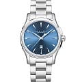 Женские механические часы Hamilton Jazzmaster Lady Auto H32315141 с автоматическим подзаводом. Корпус и браслет изготовлены из нержавеющей стали. Сапфировое стеклоСапфировое стеклоПрочный и надёжный материал из кристалла сапфира синтетического происхождения, характеризующийся особой твёрдостью и устойчивостью к царапинам и повреждениям. с антибликовым покрытием. Стальной браслет на застёжке-бабочке с кнопкамиЗастёжка "бабочка"Такой вид застёжки дополняется предохранителями, помогающими избежать случайного раскрытия браслета. Обладают изящным исполнением. . Стрелки и метки с люминесцентным покрытиемЛюминесцентное покрытиеПозволяет считывать показания времени в темноте. Производители наносят на стрелки, часовые индексы, безель или поверхность циферблата светонакопительный состав, дающий холодное свечение.. Класс водозащиты: 50 метров, позволит защитить корпус от случайных брызг или капель дождя. Окошко даты находится в положении 6 часов.
