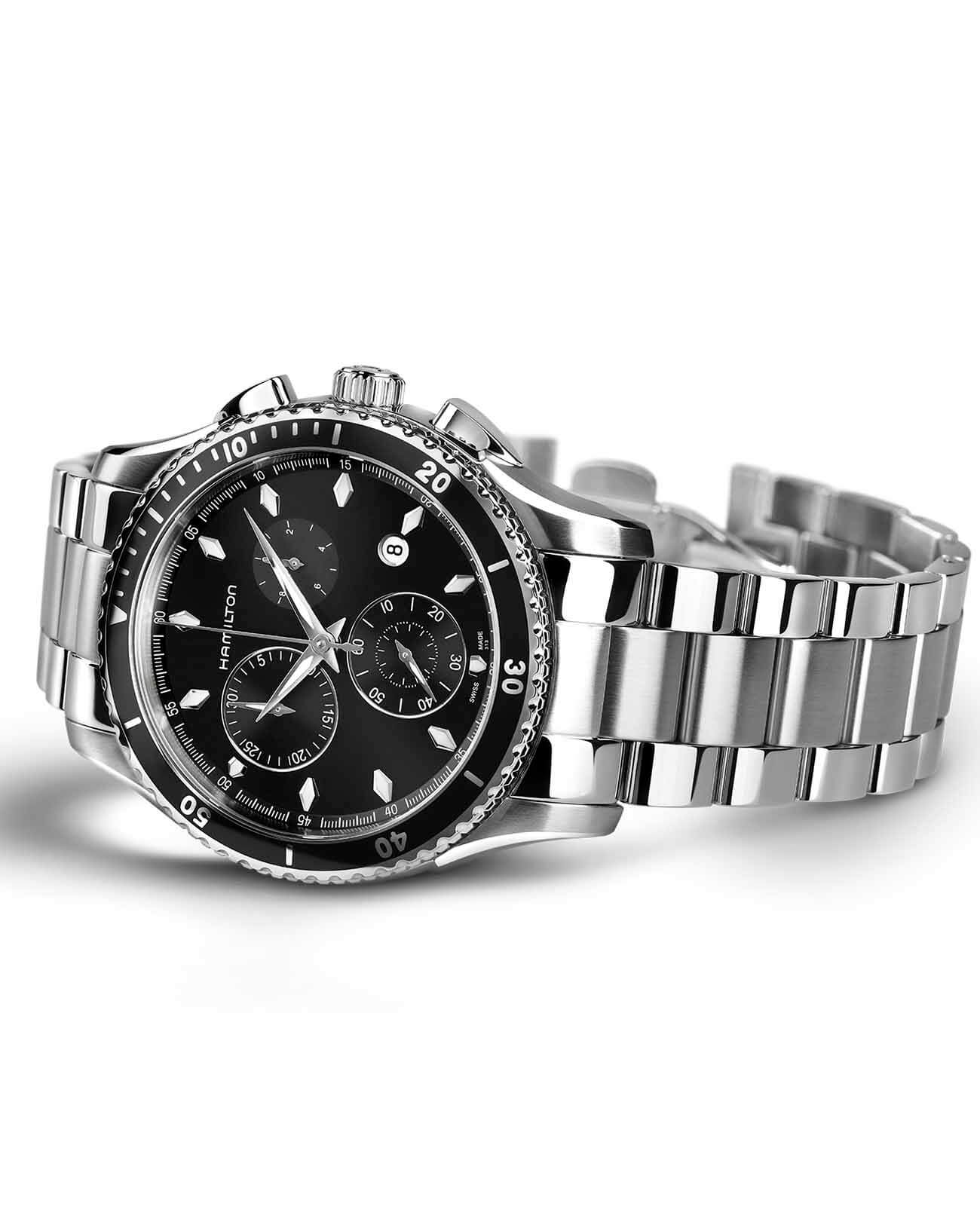 Мужские швейцарские часы Hamilton Jazzmaster Seaview Chrono Quartz H37512131, кварцевый механизм с высокой точностью. Сапфировое стеклоСапфировое стеклоПрочный и надёжный материал из кристалла сапфира синтетического происхождения, характеризующийся особой твёрдостью и устойчивостью к царапинам и повреждениям. устойчивое к появлению царапин, обладающее высокой прозрачностью. Класс водозащиты: 100 метров, позволит плавать, нырять и заниматься другими водными видами спорта. Корпус часов изготовлен из нержавеющей стали. Стрелки и метки с люминесцентным покрытиемЛюминесцентное покрытиеПозволяет считывать показания времени в темноте. Производители наносят на стрелки, часовые индексы, безель или поверхность циферблата светонакопительный состав, дающий холодное свечение..
