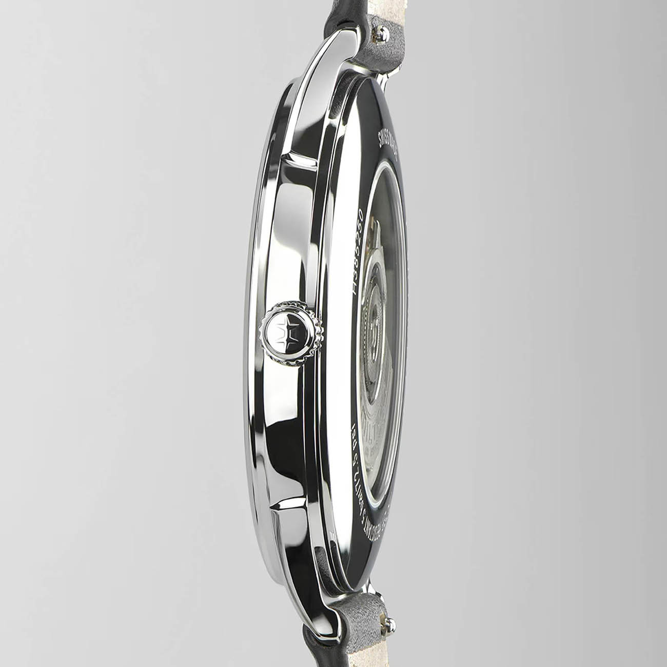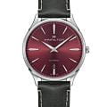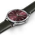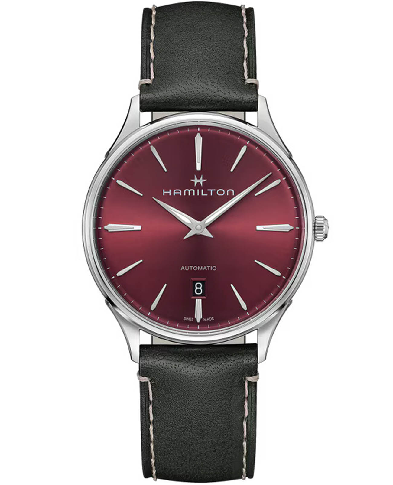 Мужские швейцарские часы Hamilton Jazzmaster Thinline Auto H38525771 представлены в круглом корпусе из нержавеющей стали 316L диаметром 40 мм и толщиной всего 8.45 мм, что делает их исключительно комфортными для ежедневного ношения. Модель оснащена автоматическим механизмом Hamilton Caliber 2892-A2 с запасом хода 42 часа, демонстрирующим свою работу через сапфировую заднюю крышкуСапфировое стеклоПрочный и надёжный материал из кристалла сапфира синтетического происхождения, характеризующийся особой твёрдостью и устойчивостью к царапинам и повреждениям.. Глубокий бордовый циферблат украшен стрелками с люминесцентным покрытием Super-LumiNova®Люминесцентное покрытиеПозволяет считывать показания времени в темноте. Производители наносят на стрелки, часовые индексы, безель или поверхность циферблата светонакопительный состав, дающий холодное свечение., обеспечивающими отличную читаемость в любое время суток. Особый шарм модели придает необычное расположение окошка даты у позиции "6 часов". Часы защищены сапфировым стекломСапфировое стеклоПрочный и надёжный материал из кристалла сапфира синтетического происхождения, характеризующийся особой твёрдостью и устойчивостью к царапинам и повреждениям. с двусторонним антибликовым покрытием, устойчивым к царапинам. Элегантный черный кожаный ремешок из телячьей кожи шириной 20 мм с классической застежкой дополняет стильный образ. Водонепроницаемость 5 ATM (50 метров) делает модель устойчивой к брызгам и дождю.