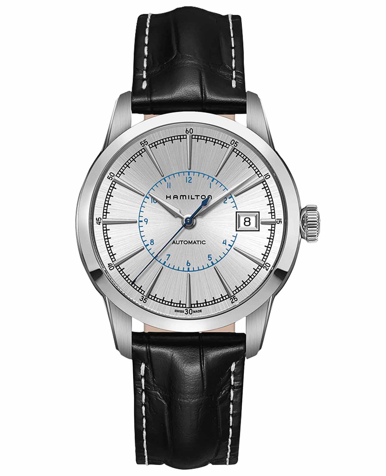 Компания Hamilton никогда не недооценивает мощь классических часов с тремя стрелками, которые опираются на наше наследие, фирменный стиль и американский дух. От старых железных дорог до современных наручных часов автоматический механизм H-10 с 80-часовым запасом хода и динамичным дизайном циферблата, напоминающим колеса ранних паровозов, созданы друг для друга. Механический механизм (автоматический калибр) с высокой точностью. Сапфировое стеклоСапфировое стеклоПрочный и надёжный материал из кристалла сапфира синтетического происхождения, характеризующийся особой твёрдостью и устойчивостью к царапинам и повреждениям. устойчивое к появлению царапин, обладающее высокой прозрачностью. Класс водозащиты: 50 метров, позволит защитить корпус от случайных брызг или капель дождя. Корпус часов изготовлен из нержавеющей стали. Кожаный ремешок с раскладной застёжкойРаскладная застёжкаТакой тип застёжки используется только на браслетах из металла. Она никогда не раскрывается полностью, происходит разделение на 2 и более частей. Раскладывающая застёжка снизит вероятность потери часов к минимуму..