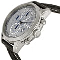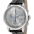 Мужские механические швейцарские часы-хронографХронографФункция позволяет измерять отрезки времени с особой точностью: часы, минуты, секунды. Верным признаком хронографа является наличие на циферблате 3 дополнительных окошек-счётчиков. с автоподзаводом Hamilton American Classic RailRoad Auto Chrono H40656781. Корпус часов изготовлен из нержавеющей стали. Кожаный ремешок с раскладной застёжкойРаскладная застёжкаТакой тип застёжки используется только на браслетах из металла. Она никогда не раскрывается полностью, происходит разделение на 2 и более частей. Раскладывающая застёжка снизит вероятность потери часов к минимуму.. Сапфировое стеклоСапфировое стеклоПрочный и надёжный материал из кристалла сапфира синтетического происхождения, характеризующийся особой твёрдостью и устойчивостью к царапинам и повреждениям. устойчивое к мелким механическим повреждениям. Класс водозащиты: 50 метров, позволит защитить корпус от случайных брызг или капель дождя. Окошки дня недели и даты находятся в положении 4 часа.