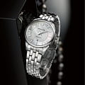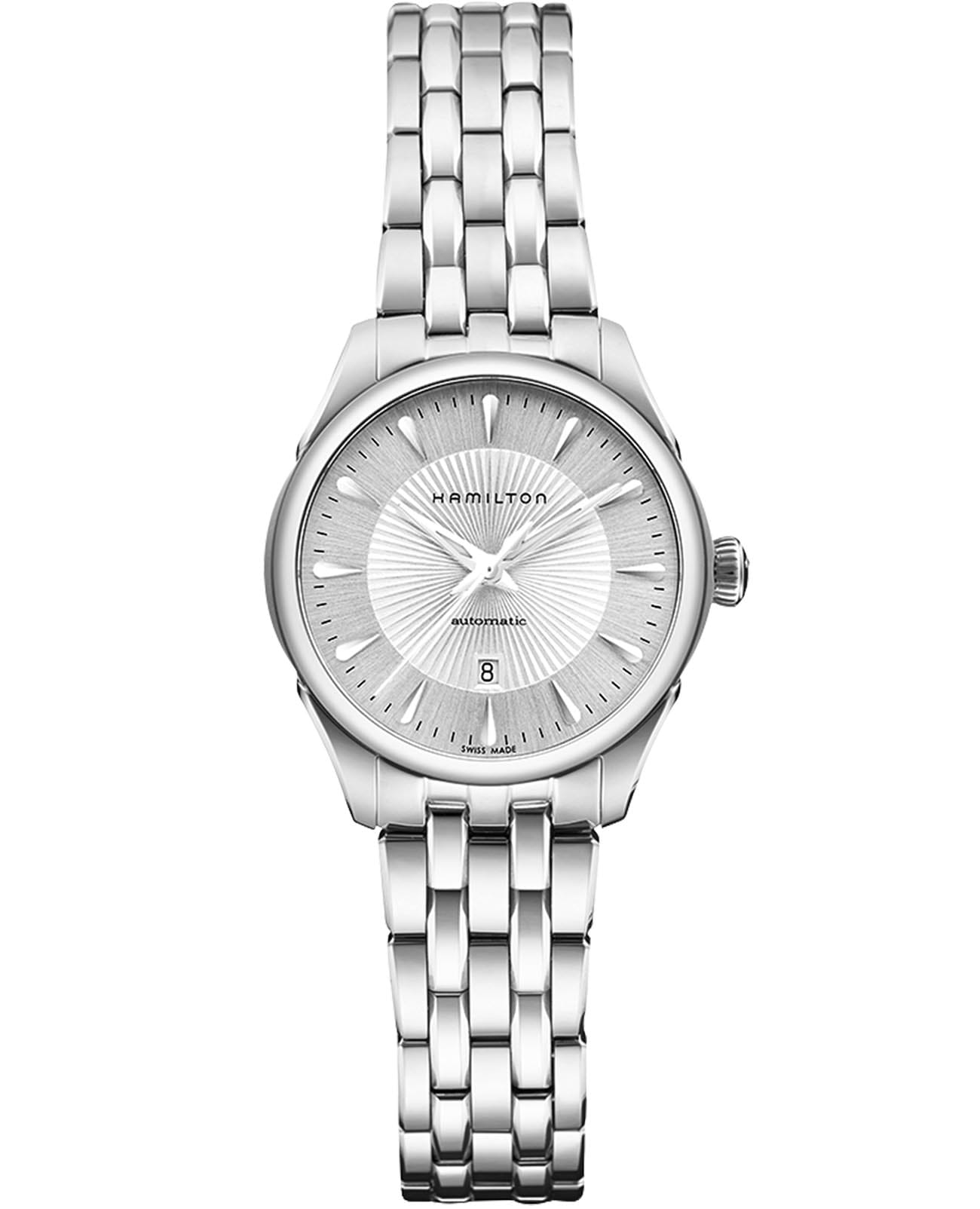 Женские механические часы Hamilton Jazzmaster Lady Auto H42215151 с автоматическим подзаводом. Корпус и браслет изготовлены из нержавеющей стали. Сапфировое стеклоСапфировое стеклоПрочный и надёжный материал из кристалла сапфира синтетического происхождения, характеризующийся особой твёрдостью и устойчивостью к царапинам и повреждениям. с антибликовым покрытием. Стальной браслет на застёжке-бабочке с кнопкамиЗастёжка "бабочка"Такой вид застёжки дополняется предохранителями, помогающими избежать случайного раскрытия браслета. Обладают изящным исполнением. . Стрелки с люминесцентным покрытиемЛюминесцентное покрытиеПозволяет считывать показания времени в темноте. Производители наносят на стрелки, часовые индексы, безель или поверхность циферблата светонакопительный состав, дающий холодное свечение.. Класс водозащиты: 50 метров, позволит защитить корпус от случайных брызг или капель дождя. Окошко даты находится в положении 6 часов.