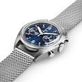 Мужские стильные швейцарские часы Hamilton Khaki Aviation Pilot Pioneer Mechanical Chronograph 40mm H76409140. Стальной корпус диаметром 40 мм и увеличенной толщиной 14,35 мм подчеркивает брутальность модели, а сапфировое стеклоСапфировое стеклоПрочный и надёжный материал из кристалла сапфира синтетического происхождения, характеризующийся особой твёрдостью и устойчивостью к царапинам и повреждениям. с антибликовым покрытиемАнтибликовое покрытиеСлой оксида металла в 0,13-0,3 микрон, благодаря которому стекло часов не бликует и не отражает свет. Антибликовое покрытие уменьшает отражение света в 10 раз, обеспечивая отличную читаемость показателей циферблата. обеспечивает превосходную читаемость матового синего циферблата со стрелками с люминесцентным покрытиемЛюминесцентное покрытиеПозволяет считывать показания времени в темноте. Производители наносят на стрелки, часовые индексы, безель или поверхность циферблата светонакопительный состав, дающий холодное свечение. Super-LumiNova®. Модель оснащена функцией хронографаХронографФункция позволяет измерять отрезки времени с особой точностью: часы, минуты, секунды. Верным признаком хронографа является наличие на циферблате 3 дополнительных окошек-счётчиков.. Механизм с ручным заводом H-51 оснащен кремниевой спиралью, обеспечивающей запас хода 60 часов и устойчивость к магнитным полям.  Модель укомплектована браслетом миланского плетения из нержавеющей стали с раскладным замкомРаскладной замокДанный вариант застежки используется только на часах с металлическим браслетом. Отличительная особенность такого крепления в том, что длина браслета становится универсальной и вы можете самостоятельно отрегулировать нужный вам размер – застежка просто двигается по браслету часов., обеспечивающий надёжную посадку. Водонепроницаемость часов достигает 10 атмосфер (100 метров), делающая их подходящими для повседневного использования и активного отдыха. Это сочетание высокой прочности, точности и изысканного дизайна для уверенных в себе мужчин.