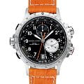 Мужские часы-хронографХронографФункция позволяет измерять отрезки времени с особой точностью: часы, минуты, секунды. Верным признаком хронографа является наличие на циферблате 3 дополнительных окошек-счётчиков. Hamilton Khaki Aviation ETO Chrono Quartz H77612933 с надёжным кварцевым механизмом. Корпус часов изготовлен из нержавеющей стали. Кожаный ремешок на стандартной застёжке. Сапфировое стеклоСапфировое стеклоПрочный и надёжный материал из кристалла сапфира синтетического происхождения, характеризующийся особой твёрдостью и устойчивостью к царапинам и повреждениям. с антибликовым покрытием. Второй часовой поясВторой часовой поясФункция, позволяющая отображать время двух часовых поясов одновременно., вычисление поправки на ветер, окошко даты находится в положении 6 часов. Стрелки и метки с люминесцентным покрытиемЛюминесцентное покрытиеПозволяет считывать показания времени в темноте. Производители наносят на стрелки, часовые индексы, безель или поверхность циферблата светонакопительный состав, дающий холодное свечение.. Уровень влагозащиты: 100 метров, позволит плавать, нырять и заниматься другими водными видами спорта.