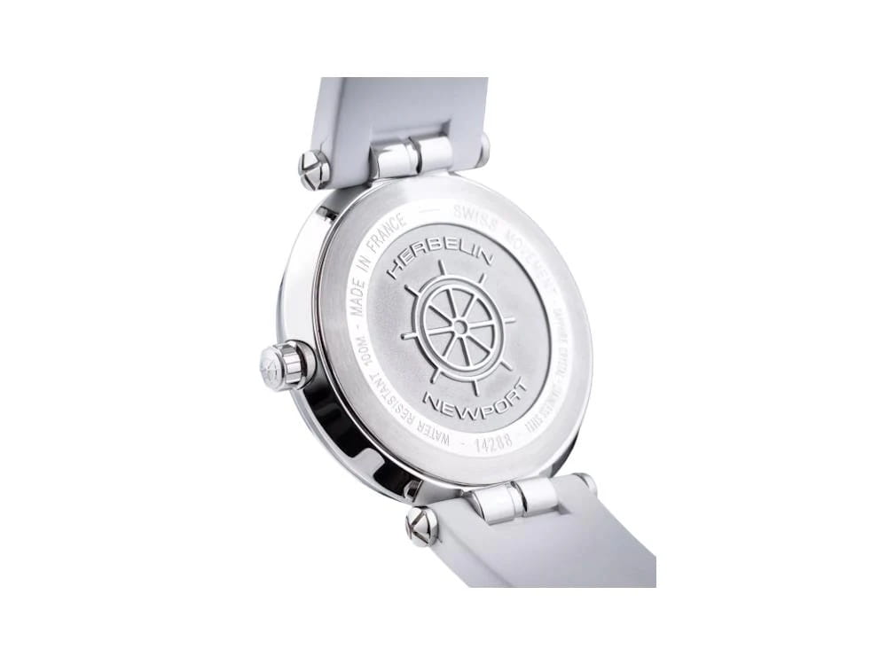 Женские кварцевые часы Herbelin Newport 14288AP89CW – отражающий идеальное сочетание современного дизайна, надёжности и функциональности. Элегантный облик станет превосходным завершением образа, наделив его индивидуальным характером. Корпус из нержавеющей стали серебристого цвета, диаметром 34.5 мм и толщиной 7.9 мм, идеально сбалансирован и элегантен. Сапфировое стеклоСапфировое стеклоПрочный и надёжный материал из кристалла сапфира синтетического происхождения, характеризующийся особой твёрдостью и устойчивостью к царапинам и повреждениям. защищает циферблат от царапин и устойчивое к механическим повреждениям. БезельБезельВнешний ободок, закрепляющий стекло. В спортивных часах так называется поворотное кольцо с делениями на циферблате, выполняет роль таймера – замеряет отрезки времени на шкале. Неподвижный безель – элемент декора. Однонаправленно вращающийся безель на дайверских часах позволяет фиксировать моменты погружения и выныривания на поверхность. украшен винтами, заводная головка с защитой. Окошко даты находится в положении 3 часа. Стрелки и метки с люминесцентным покрытиемЛюминесцентное покрытиеПозволяет считывать показания времени в темноте. Производители наносят на стрелки, часовые индексы, безель или поверхность циферблата светонакопительный состав, дающий холодное свечение.. Циферблат украшен бриллиантами. Белый каучуковый ремешок на застёжке-бабочке с кнопкамиЗастёжка "бабочка"Такой вид застёжки дополняется предохранителями, помогающими избежать случайного раскрытия браслета. Обладают изящным исполнением. обеспечивает комфортное ношение. Водозащита 100 метров позволит плавать, нырять и заниматься другими водными видами спорта. Эта модель – отличный выбор для тех, кто ищет сочетание стиля, качества и функциональности. Часы станут не только полезным аксессуаром, но и выразительным элементом вашего имиджа.