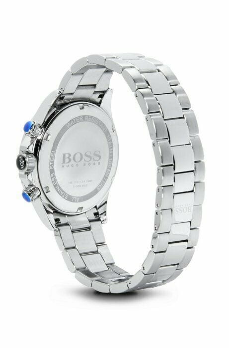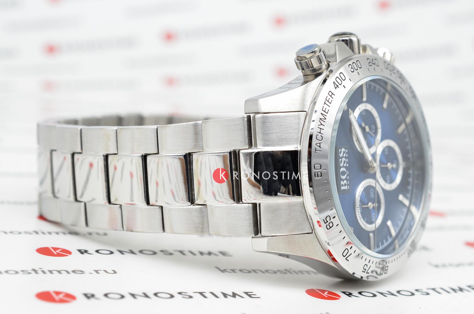 Мужские кварцевые часы Hugo Boss Ikon HB1512963 представляют собой стильный хронографХронографФункция позволяет измерять отрезки времени с особой точностью: часы, минуты, секунды. Верным признаком хронографа является наличие на циферблате 3 дополнительных окошек-счётчиков. с круглым корпусом диаметром 44 мм из нержавеющей стали, дополненным черным циферблатом с серебристыми стрелками и индексами. Модель оснащена высокоточным кварцевым механизмом с функцией хронографаХронографФункция позволяет измерять отрезки времени с особой точностью: часы, минуты, секунды. Верным признаком хронографа является наличие на циферблате 3 дополнительных окошек-счётчиков., включая 60-минутный счетчик и 24-часовой индикатор, а также тахиметрической шкалойТахиметрРазмеченная шкала, располагается на ободке или безеле часов. Тахиметр позволяет рассчитать скорость на определённом участке пути, расстояние измеряется в километрах или милях. на безэлеБезельВнешний ободок, закрепляющий стекло. В спортивных часах так называется поворотное кольцо с делениями на циферблате, выполняет роль таймера – замеряет отрезки времени на шкале. Неподвижный безель – элемент декора. Однонаправленно вращающийся безель на дайверских часах позволяет фиксировать моменты погружения и выныривания на поверхность. для расчетов скорости. Циферблат защищен устойчивым к царапинам минеральным стекломМинеральное стеклоМинеральное стекло представляет собой искусственно выращенный минерал кварца. Такое стекло отличается особой устойчивостью к повреждениям и царапинам. Уступает по некоторым качествам сапфировому стеклу., а водонепроницаемость 5 ATM (50 метров) обеспечивает защиту от брызг и дождя. Глубокий синий циферблат с люминесцентным покрытиемЛюминесцентное покрытиеПозволяет считывать показания времени в темноте. Производители наносят на стрелки, часовые индексы, безель или поверхность циферблата светонакопительный состав, дающий холодное свечение. на стрелках, обеспечивает отличную читаемость в любое время суток. Стальной браслет с раскладной застежкойРаскладная застёжкаТакой тип застёжки используется только на браслетах из металла. Она никогда не раскрывается полностью, происходит разделение на 2 и более частей. Раскладывающая застёжка снизит вероятность потери часов к минимуму. обеспечивает надежную посадку на запястье.