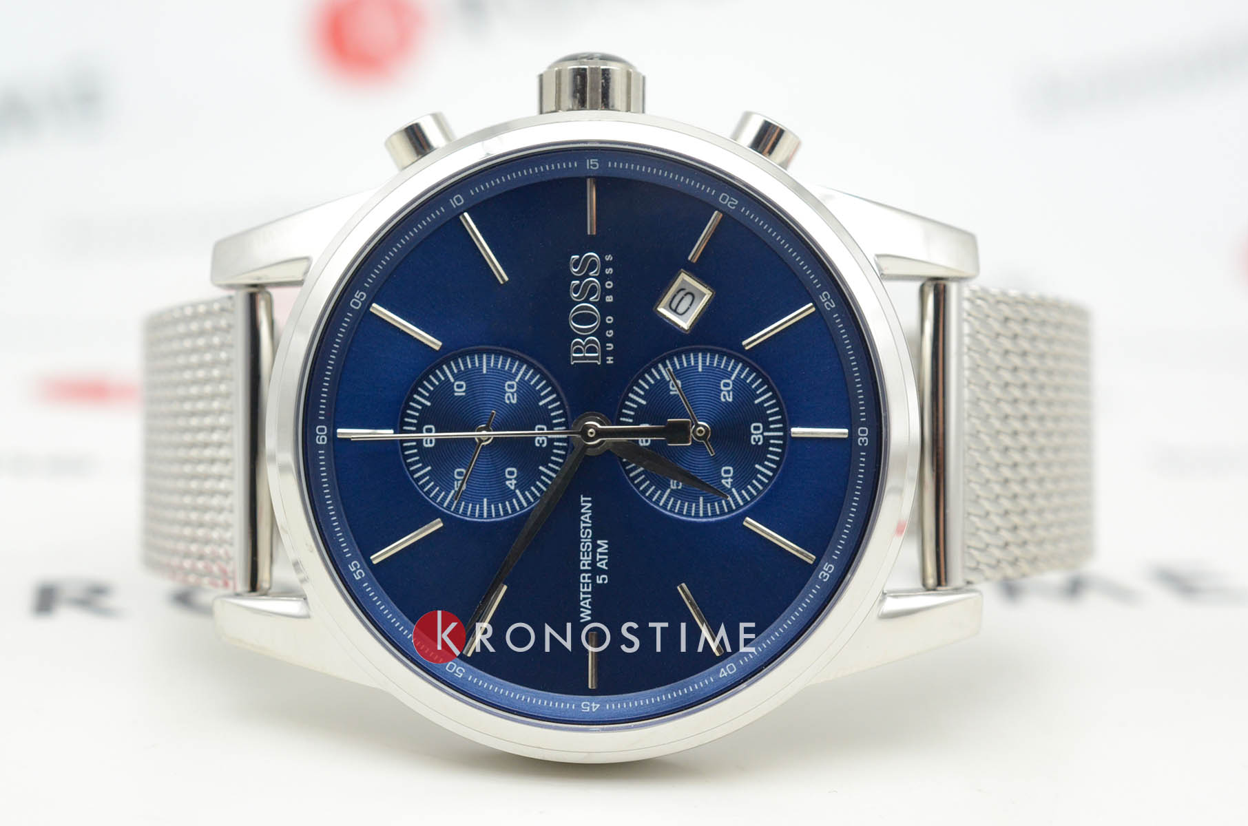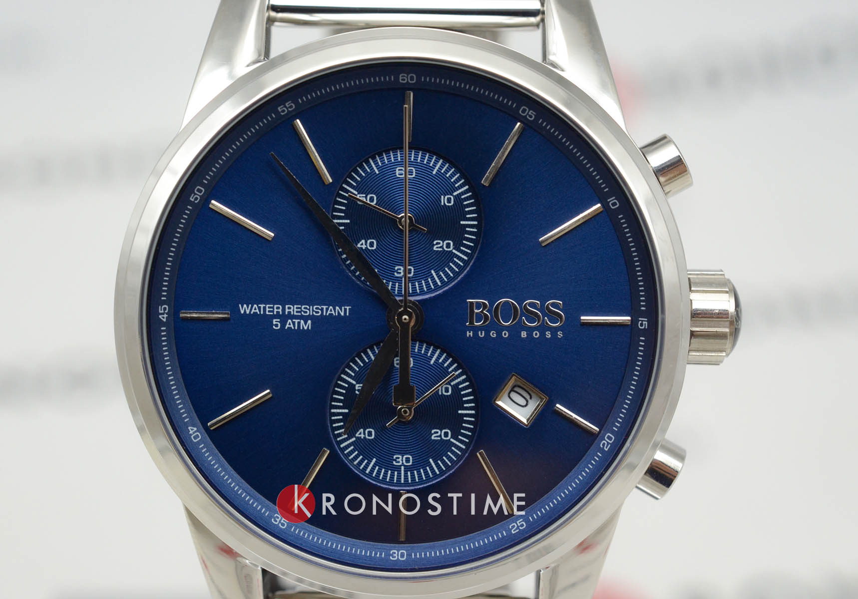 Мужские кварцевые часы Hugo Boss Jet HB1513441 представлены в 40-мм корпусе из нержавеющей стали серебристого цвета. Модель оснащена кварцевым механизмом с функцией хронографаХронографФункция позволяет измерять отрезки времени с особой точностью: часы, минуты, секунды. Верным признаком хронографа является наличие на циферблате 3 дополнительных окошек-счётчиков. и секундомеромСекундомерСекундоме́р — прибор, способный измерять интервалы времени с точностью до долей секунды., а также окошком даты на позиции 3 часа. Синий циферблат со штриховыми метками защищен устойчивым к царапинам минеральным стекломМинеральное стеклоМинеральное стекло представляет собой искусственно выращенный минерал кварца. Такое стекло отличается особой устойчивостью к повреждениям и царапинам. Уступает по некоторым качествам сапфировому стеклу.. Стальной браслет выполнен в технике "миланское плетение" и дополнен раскладной застёжкойРаскладная застёжкаТакой тип застёжки используется только на браслетах из металла. Она никогда не раскрывается полностью, происходит разделение на 2 и более частей. Раскладывающая застёжка снизит вероятность потери часов к минимуму.. Часы обладают водонепроницаемостью WR50 (5 ATM), что обеспечивает защиту от брызг воды и дождя.