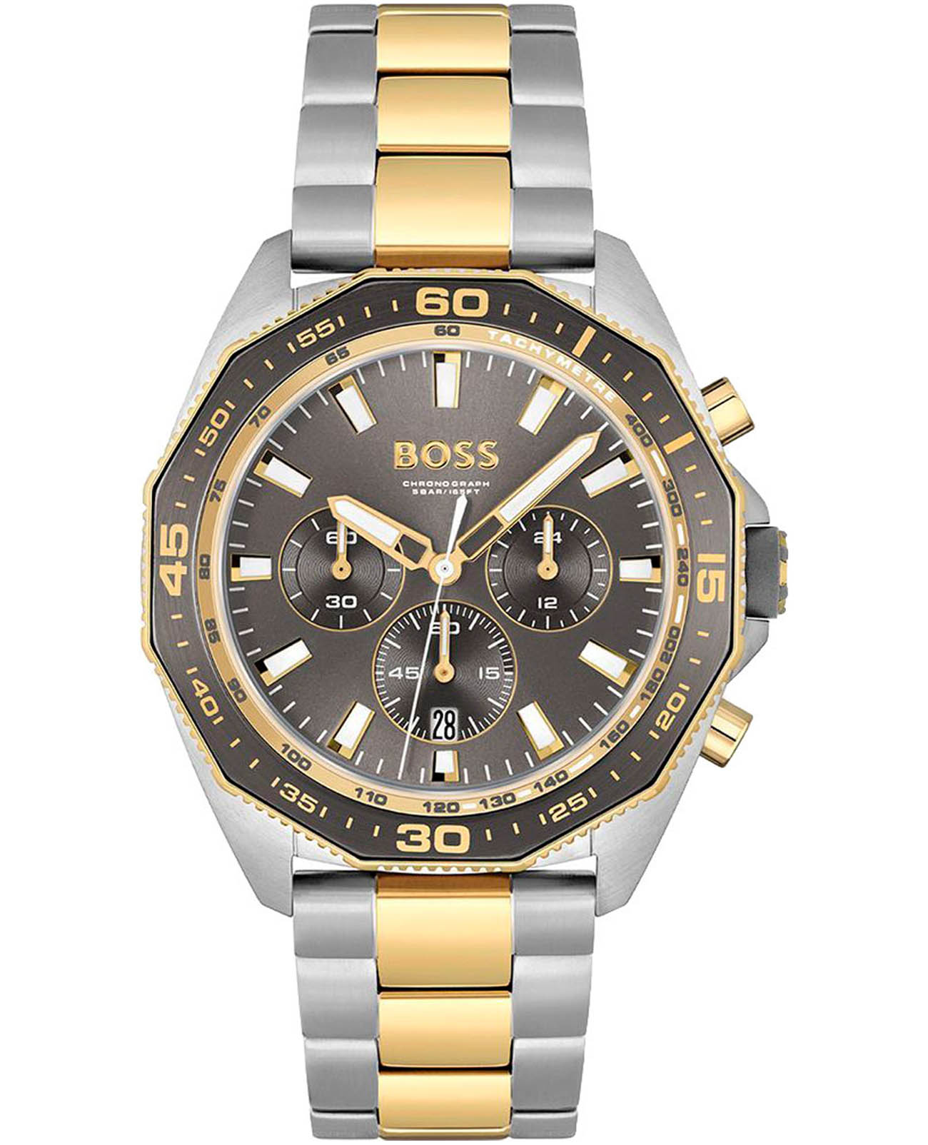 Мужские часы Hugo Boss Energy HB1513974 представлены в круглом 44-мм корпусе из нержавеющей стали с IP-покрытиемIP-покрытиеМетод ионного напыления. Демонстрирует повышенную устойчивость к истиранию, окислению и химическим веществам. Под воздействием высокого давления и температуры около 1500°C молекулы металла надёжно соединяются с частицами корпуса часов.. Оснащены кварцевым механизмом с функциями хронографаХронографФункция позволяет измерять отрезки времени с особой точностью: часы, минуты, секунды. Верным признаком хронографа является наличие на циферблате 3 дополнительных окошек-счётчиков., секундомеромСекундомерСекундоме́р — прибор, способный измерять интервалы времени с точностью до долей секунды. и тахиметромТахиметрРазмеченная шкала, располагается на ободке или безеле часов. Тахиметр позволяет рассчитать скорость на определённом участке пути, расстояние измеряется в километрах или милях. на безелеБезельВнешний ободок, закрепляющий стекло. В спортивных часах так называется поворотное кольцо с делениями на циферблате, выполняет роль таймера – замеряет отрезки времени на шкале. Неподвижный безель – элемент декора. Однонаправленно вращающийся безель на дайверских часах позволяет фиксировать моменты погружения и выныривания на поверхность.. Серый циферблат защищен устойчивым к царапинам минеральным стекломМинеральное стеклоМинеральное стекло представляет собой искусственно выращенный минерал кварца. Такое стекло отличается особой устойчивостью к повреждениям и царапинам. Уступает по некоторым качествам сапфировому стеклу.. Браслет из нержавеющей стали с IP-покрытиемIP-покрытиеМетод ионного напыления. Демонстрирует повышенную устойчивость к истиранию, окислению и химическим веществам. Под воздействием высокого давления и температуры около 1500°C молекулы металла надёжно соединяются с частицами корпуса часов. дополнен раскладной застёжкойРаскладная застёжкаТакой тип застёжки используется только на браслетах из металла. Она никогда не раскрывается полностью, происходит разделение на 2 и более частей. Раскладывающая застёжка снизит вероятность потери часов к минимуму., а стрелки покрыты люминесцентным составомЛюминесцентное покрытиеПозволяет считывать показания времени в темноте. Производители наносят на стрелки, часовые индексы, безель или поверхность циферблата светонакопительный состав, дающий холодное свечение. для видимости в темноте. Водонепроницаемость 50 метров (5 ATM) позволяет использовать часы для плавания.