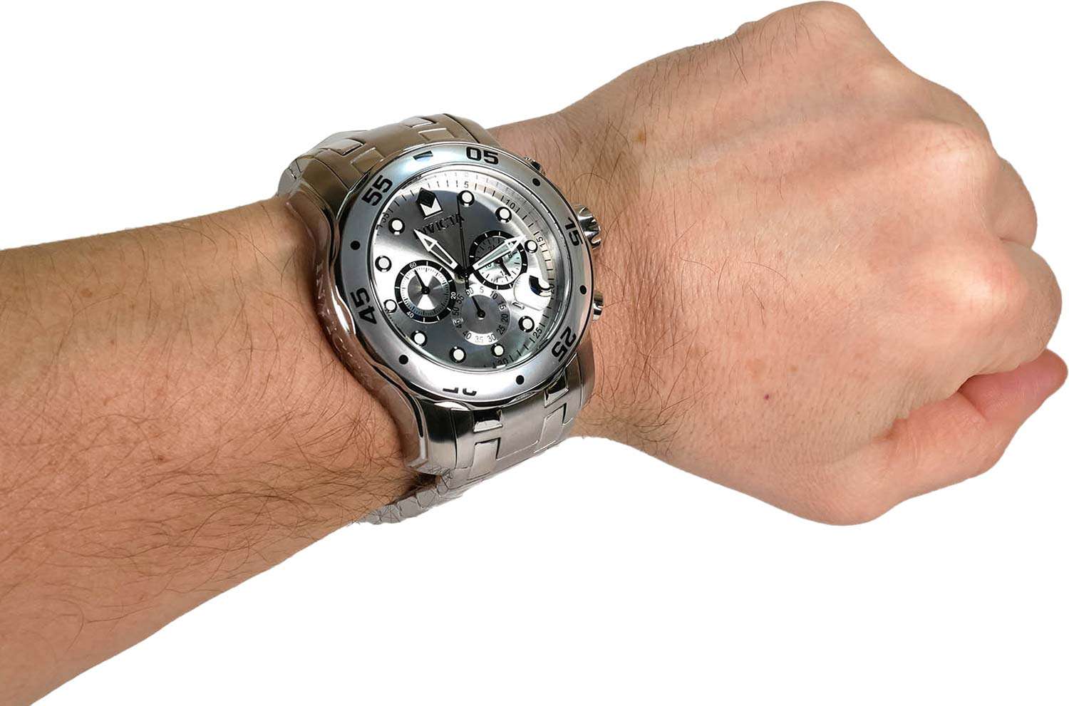 Стильные мужские наручные часы-хронографХронографФункция позволяет измерять отрезки времени с особой точностью: часы, минуты, секунды. Верным признаком хронографа является наличие на циферблате 3 дополнительных окошек-счётчиков. Invicta Pro Diver IN0071 созданы для тех, кто ценит спортивный стиль, функциональность и высокое качество. Модель из коллекции Pro Diver сочетает в себе надежность, точность и премиальный дизайн.