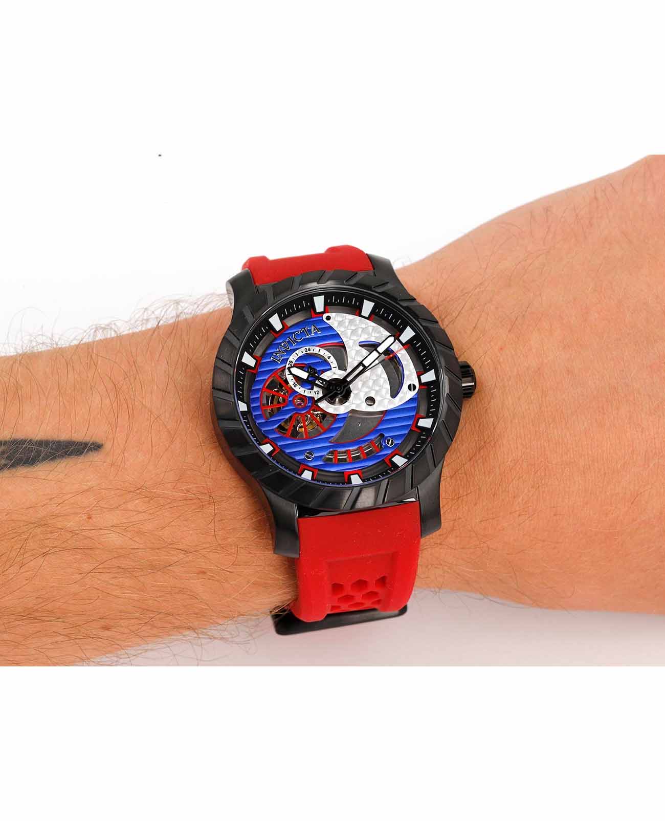 Мужские наручные часы Invicta Specialty IN31988 из коллекции Specialty сочетают в себе спортивный дизайн и надежность современных технологий. Модель обладает круглым корпусом диаметром 45 мм, выполненным из нержавеющей стали с IP-покрытиемIP-покрытиеМетод ионного напыления. Демонстрирует повышенную устойчивость к истиранию, окислению и химическим веществам. Под воздействием высокого давления и температуры около 1500°C молекулы металла надёжно соединяются с частицами корпуса часов., что обеспечивает высокую устойчивость к внешним воздействиям. Многослойный циферблат украшен металлическими панелями, закрепленными винтами. Заостренные прямоугольные стрелки в стиле Baton. Метки в виде штрихов. Ремешок часов изготовлен из красного силикона, гарантируя комфортное ношение и безопасность . Циферблат дополнен индексными метками и светящимися стрелками с люминесцентным покрытиемЛюминесцентное покрытиеПозволяет считывать показания времени в темноте. Производители наносят на стрелки, часовые индексы, безель или поверхность циферблата светонакопительный состав, дающий холодное свечение., которые обеспечивают отличную видимость даже в темноте . На циферблате также присутствуют минутные деления по внешнему ободку, а также один малый циферблат для дополнительных функций . Для защиты используется минеральное стеклоМинеральное стеклоМинеральное стекло представляет собой искусственно выращенный минерал кварца. Такое стекло отличается особой устойчивостью к повреждениям и царапинам. Уступает по некоторым качествам сапфировому стеклу. Flame Fusion, которое обеспечивает прочность и устойчивость к царапинам . Часы оснащены автоматическим механизмом, что гарантирует точность хода без необходимости подзаводки . Водонепроницаемость модели достигает 100 метров (10 атмосфер), что позволяет использовать их во время плавания и других водных видов спорта, однако не рекомендуется для глубоководного дайвинга . Сочетание практичности, надежности и стильного дизайна делает эту модель универсальным аксессуаром как для повседневной носки, так и для занятий спортом .