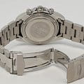 Браслет выполнен из нержавеющей стали и оснащен раскладывающейся застежкойРаскладная застёжкаТакой тип застёжки используется только на браслетах из металла. Она никогда не раскрывается полностью, происходит разделение на 2 и более частей. Раскладывающая застёжка снизит вероятность потери часов к минимуму. с системой блокировки, обеспечивающей комфортную фиксацию на запястье. Часы обладают водозащитой до 200 метров, что делает их подходящими для плавания, ныряния и других водных видов спорта.