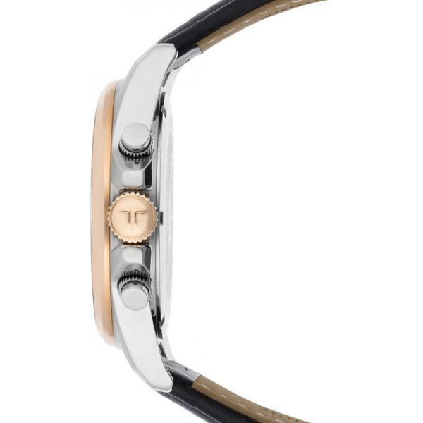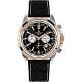 Мужские наручные часы с хронографом; Корпус - Нержавеющая сталь, частичное PVD покрытие, Стекло - Минеральное, Водозащита -200 м. (WR 200), Материал ремешка - Кожаный