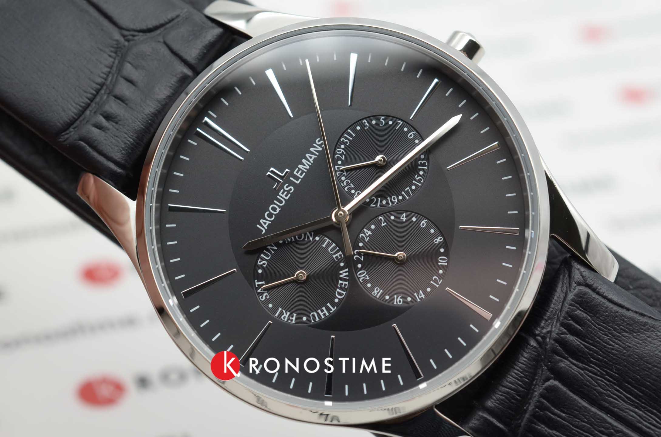 Наручные часы Jacques Lemans призваны ставить на первое место индивидуальный стиль владельца, классическая элегантность придётся по вкусу каждому. Брендовые часы привлекают минималистичным дизайном, отсутствие вычурности и обилия декорирующих элементов делают модель лучшим решением для ежедневного применения. Аксессуар можно носить с деловыми костюмами и повседневной одеждой, он органично сочетается как с классическими брюками, так и с рваными джинсами. Это настоящее часовое искусство высокого качества, часы считаются актуальным вариантом на все времена и с идеальной точностью показывают время благодаря надёжному японскому механизму.