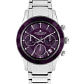 Женские часы-хронографХронографФункция позволяет измерять отрезки времени с особой точностью: часы, минуты, секунды. Верным признаком хронографа является наличие на циферблате 3 дополнительных окошек-счётчиков. c секундомеромСекундомерСекундоме́р — прибор, способный измерять интервалы времени с точностью до долей секунды. Jacques Lemans Venice 1-2151M, кварцевый механизм с высокой точностью. Минеральное стеклоМинеральное стеклоМинеральное стекло представляет собой искусственно выращенный минерал кварца. Такое стекло отличается особой устойчивостью к повреждениям и царапинам. Уступает по некоторым качествам сапфировому стеклу. устойчивое к мелким механическим повреждениям. Корпус из нержавеющей стали. Широкий безельБезельВнешний ободок, закрепляющий стекло. В спортивных часах так называется поворотное кольцо с делениями на циферблате, выполняет роль таймера – замеряет отрезки времени на шкале. Неподвижный безель – элемент декора. Однонаправленно вращающийся безель на дайверских часах позволяет фиксировать моменты погружения и выныривания на поверхность. с гранями и с PVDPVDУльтратонкое покрытие наносится в технике вакуумного напыления, сочетает в себе нитрид титана особой прочности со слоем золота или оксида хрома. Несёт в себе декоративную или защитную функцию.. На циферблате расположены три дополнительных индикатора. Окошко даты находится в положении между 4 и 5 часов. Стрелки с люминесцентным покрытиемЛюминесцентное покрытиеПозволяет считывать показания времени в темноте. Производители наносят на стрелки, часовые индексы, безель или поверхность циферблата светонакопительный состав, дающий холодное свечение.. Каждая накладная риска украшена кристаллом Swarowski. Класс водозащиты: 50 метров, позволит защитить корпус от случайных брызг или капель дождя. Браслет из нержавеющей стали на раскладной застёжкеРаскладная застёжкаТакой тип застёжки используется только на браслетах из металла. Она никогда не раскрывается полностью, происходит разделение на 2 и более частей. Раскладывающая застёжка снизит вероятность потери часов к минимуму..