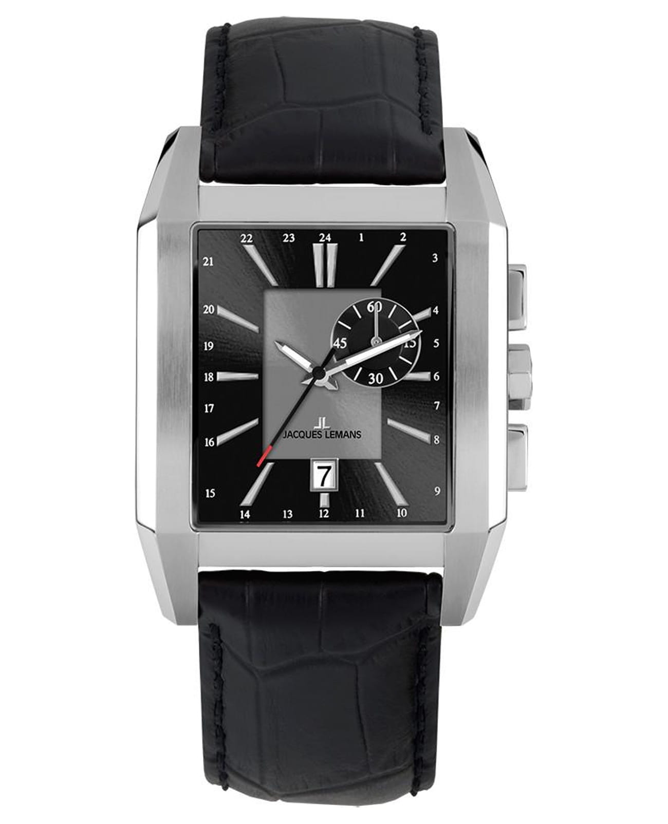 Мужские часы Jacques Lemans London 1-2162A, кварцевый механизм с высокой точностью. Минеральное стеклоМинеральное стеклоМинеральное стекло представляет собой искусственно выращенный минерал кварца. Такое стекло отличается особой устойчивостью к повреждениям и царапинам. Уступает по некоторым качествам сапфировому стеклу. устойчивое к мелким механическим повреждениям. Корпус часов изготовлен из стали. Второй часовой поясВторой часовой поясФункция, позволяющая отображать время двух часовых поясов одновременно.. Окошко даты находится в положении 6 часов. Стрелки с люминесцентным покрытиемЛюминесцентное покрытиеПозволяет считывать показания времени в темноте. Производители наносят на стрелки, часовые индексы, безель или поверхность циферблата светонакопительный состав, дающий холодное свечение.. Секундная стрелка вынесена на отдельный циферблат. Класс водозащиты: 50 метров, позволит плавать, нырять и заниматься другими водными видами спорта. Кожаный ремешок на стандартной застёжке.
